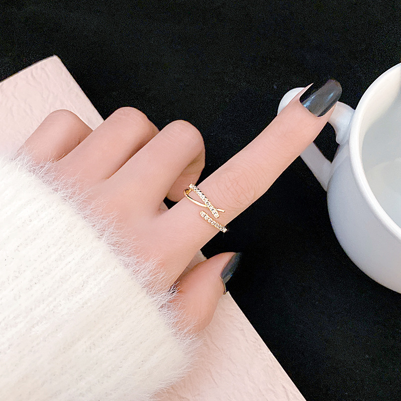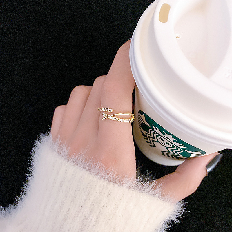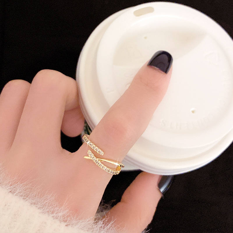 Exquisite Fashion Cross Micro-inlaid Zircon Ring Women's Super Flash Japanese and Korean-style All-match Finger Ring Simple Design Niche Ring