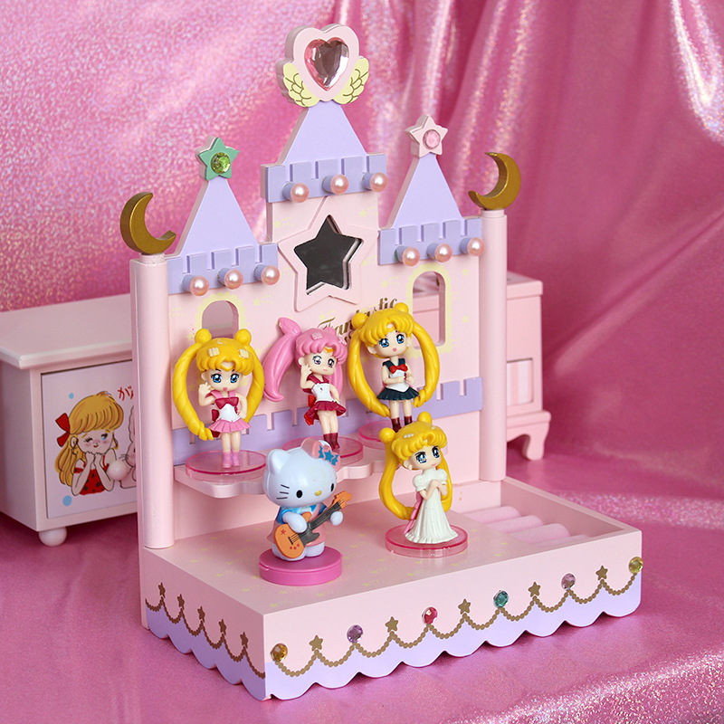 swimmer Castle Jewelry Storage Box Wooden Girls' Heart Dormitory Desktop Decorative Jewelry Storage Cabinet Fixing Cabinet