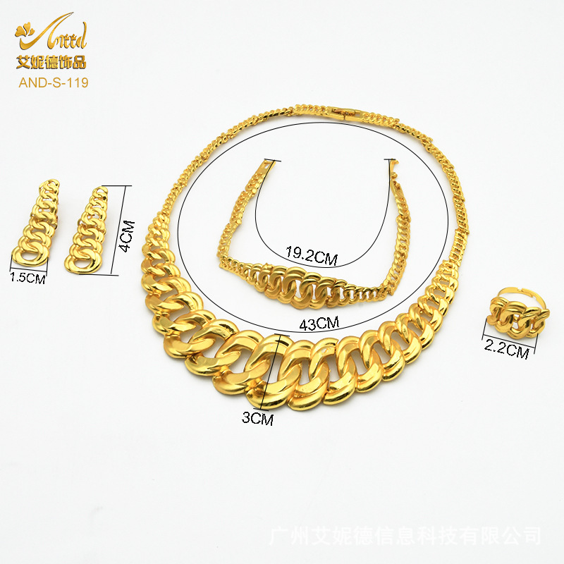 非洲黄金首饰套装女式迪拜新娘饰品项链手链耳环戒指四件套现货批