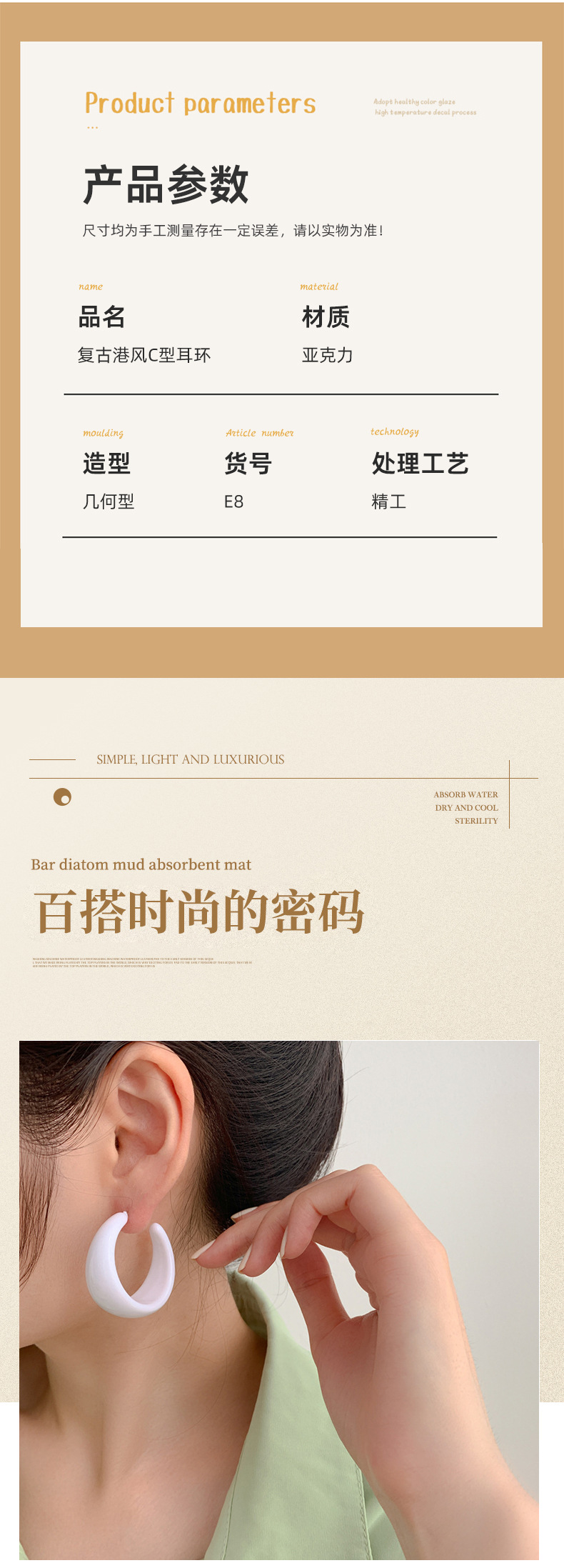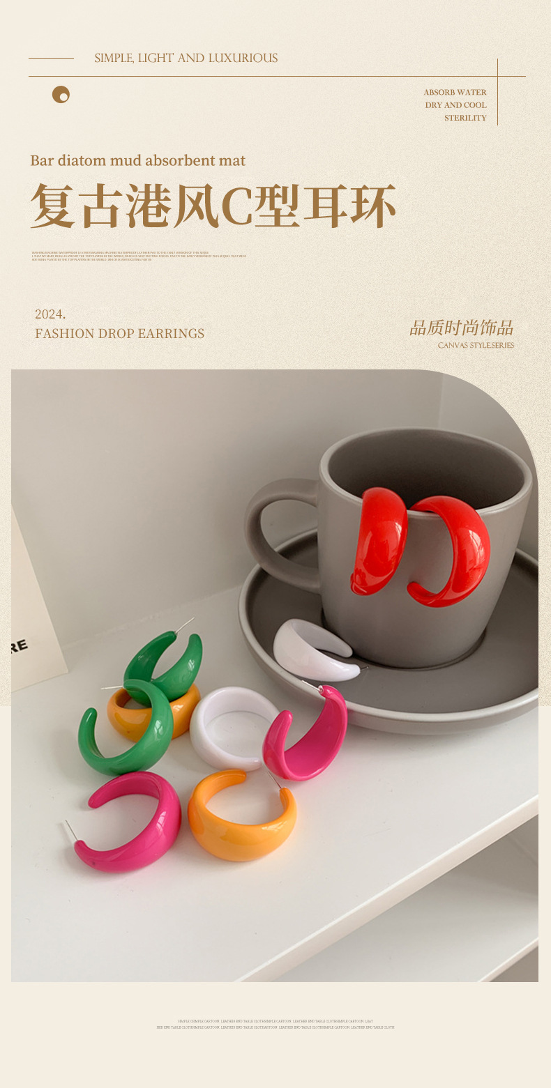 2024 New Retro Hong Kong Style C- shaped Earrings Women's Fashionable Elegant Fashion Summer Exaggerated Girls' Geometric Earrings