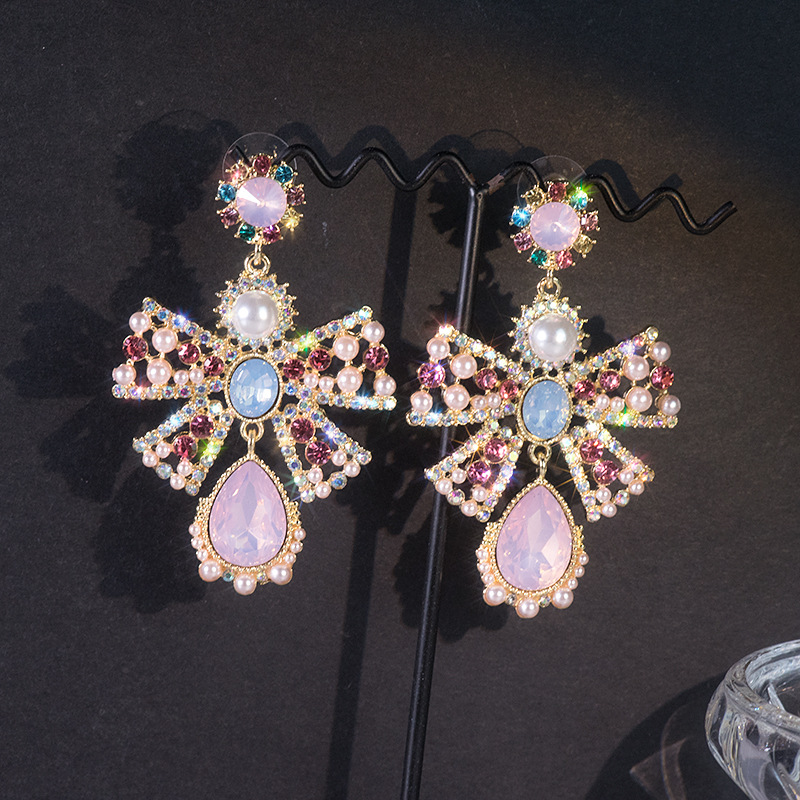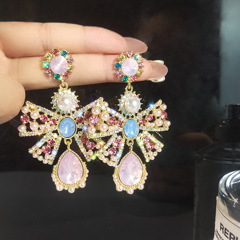 2021 New Arrival Bow Earrings Pink Exaggerated Fashion Earrings Hollow Pearl Women's Silver Pin Earrings