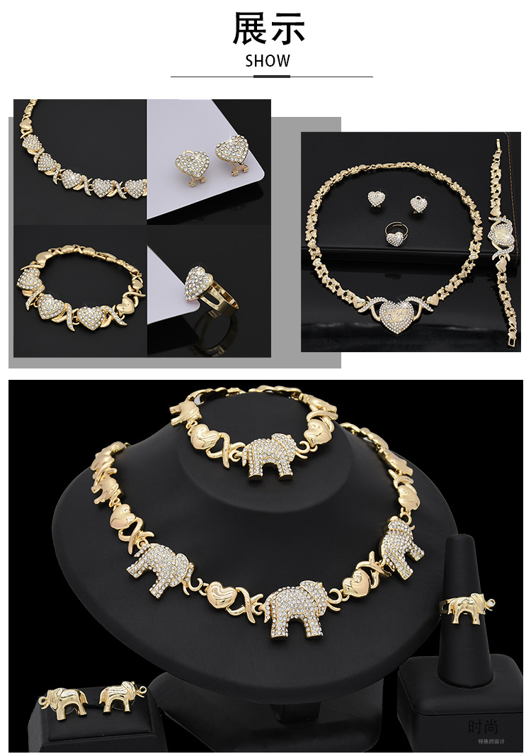 Craft: Cross-border new dubai 18k gold heart-shaped jewelry set
