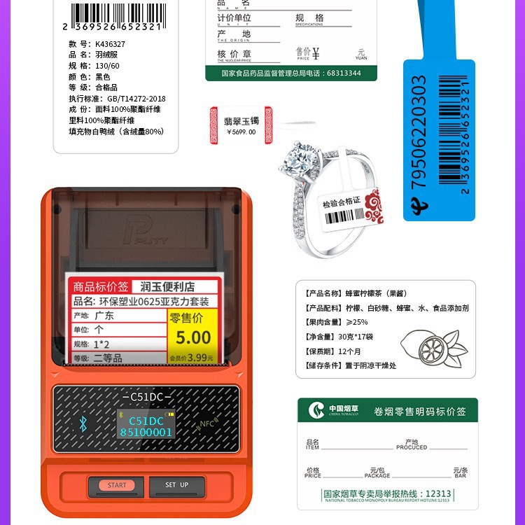 Putie C51DC label printer thermal adhesive clothing tag jewelry commercial barcode food Bluetooth