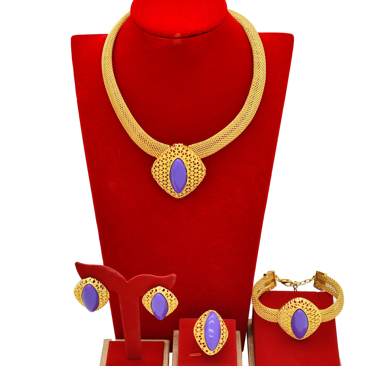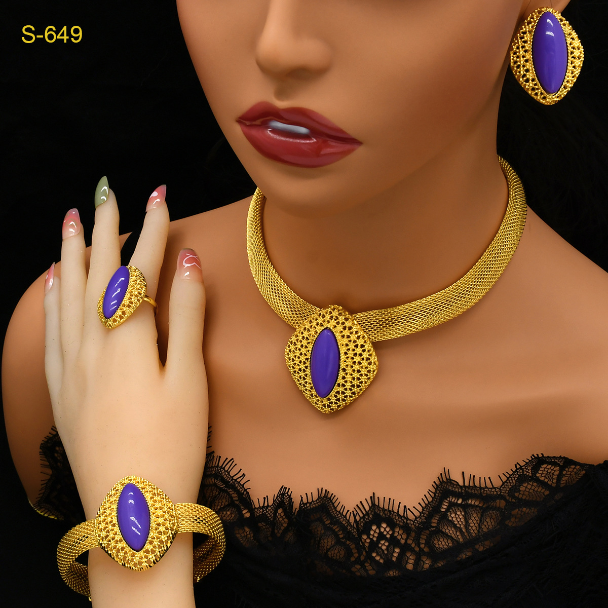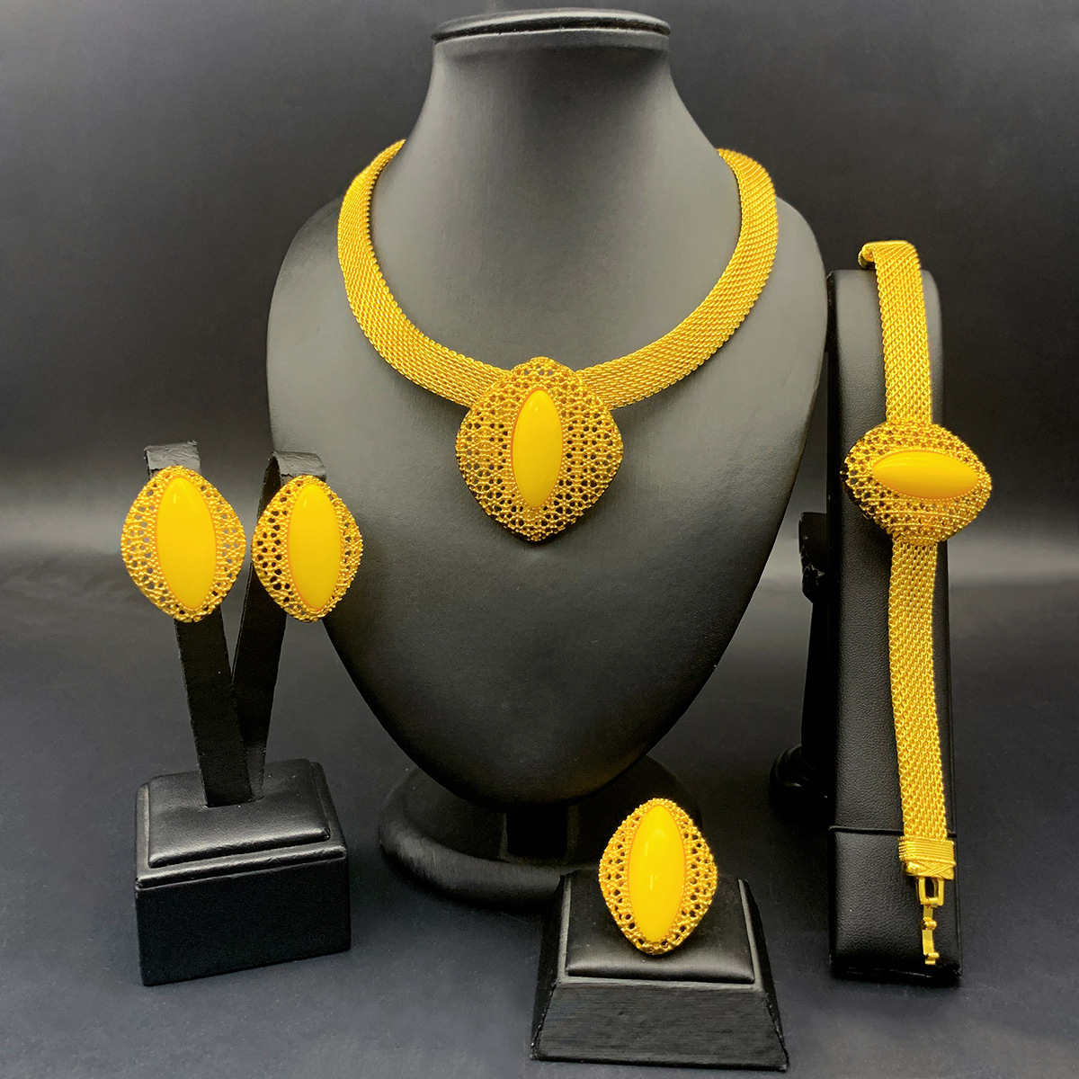 Scene: Eunice dubai bride 24k gold plated necklace bracelet earrings ring jewelry set