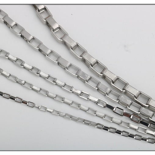 Stainless Steel Long Box Chain Long Plaid Chain Venetian Chain Titanium Steel Necklace Pendant for Men and Women with Chain Bag Chain Wholesale