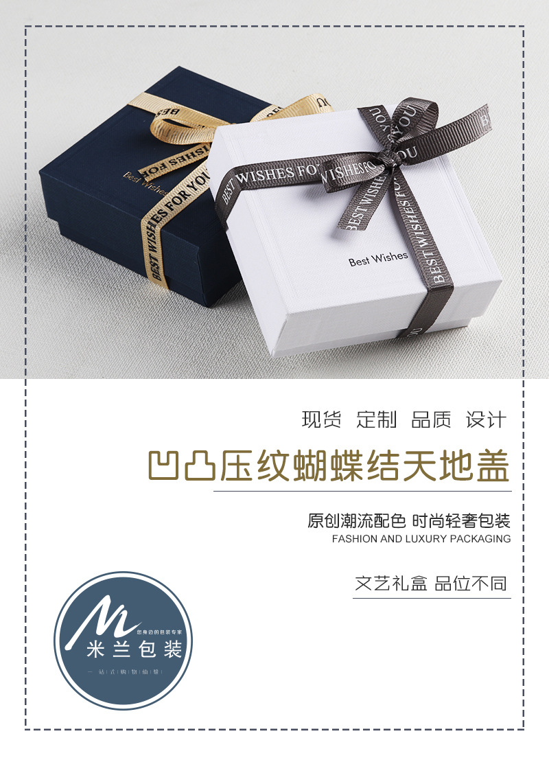 Milan Boutique Heaven and Earth Cover Gift Box Jewelry Box with Printable Logo White Bow Jewelry Packaging Box Ring Box