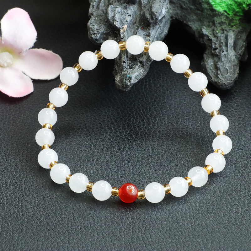 Color: Golden silk jade white jade acacia bean bracelet about 8mm CB2102121