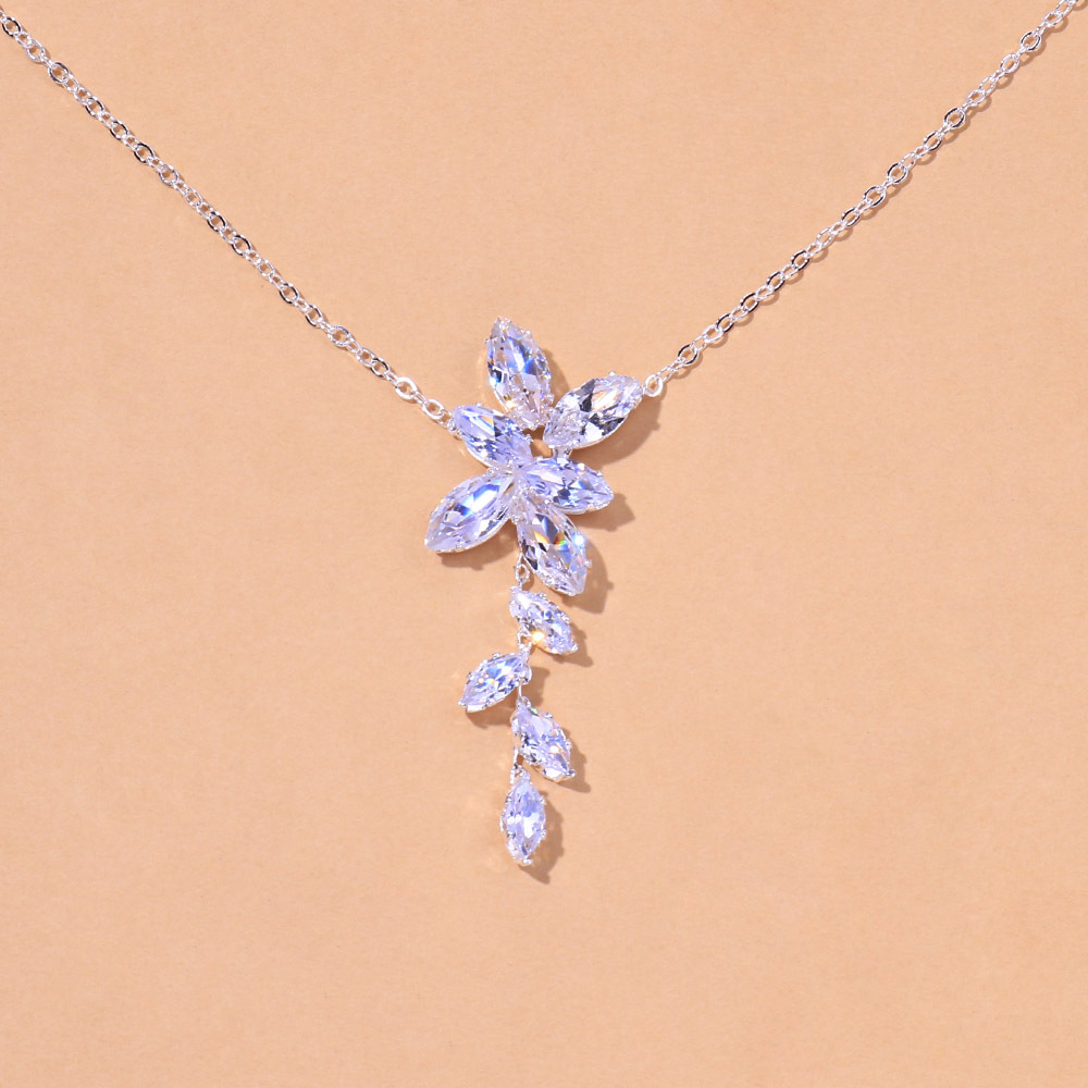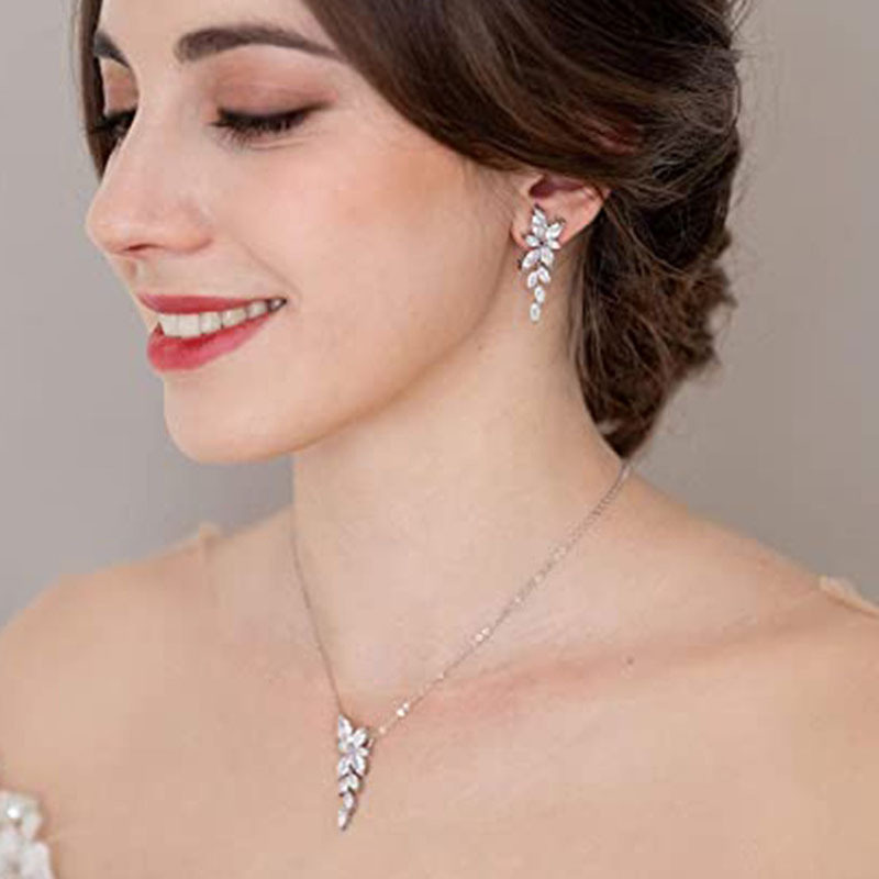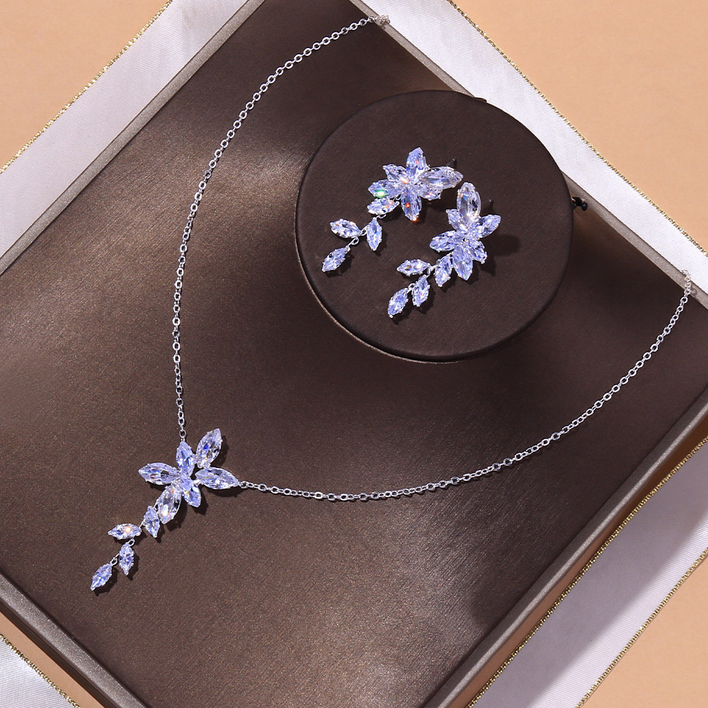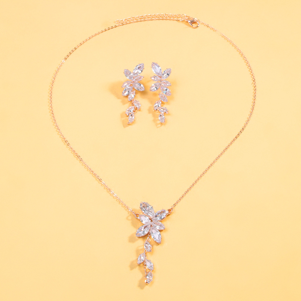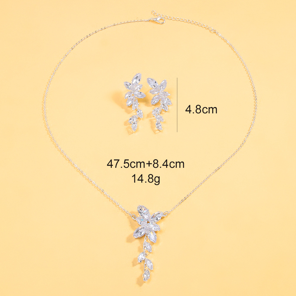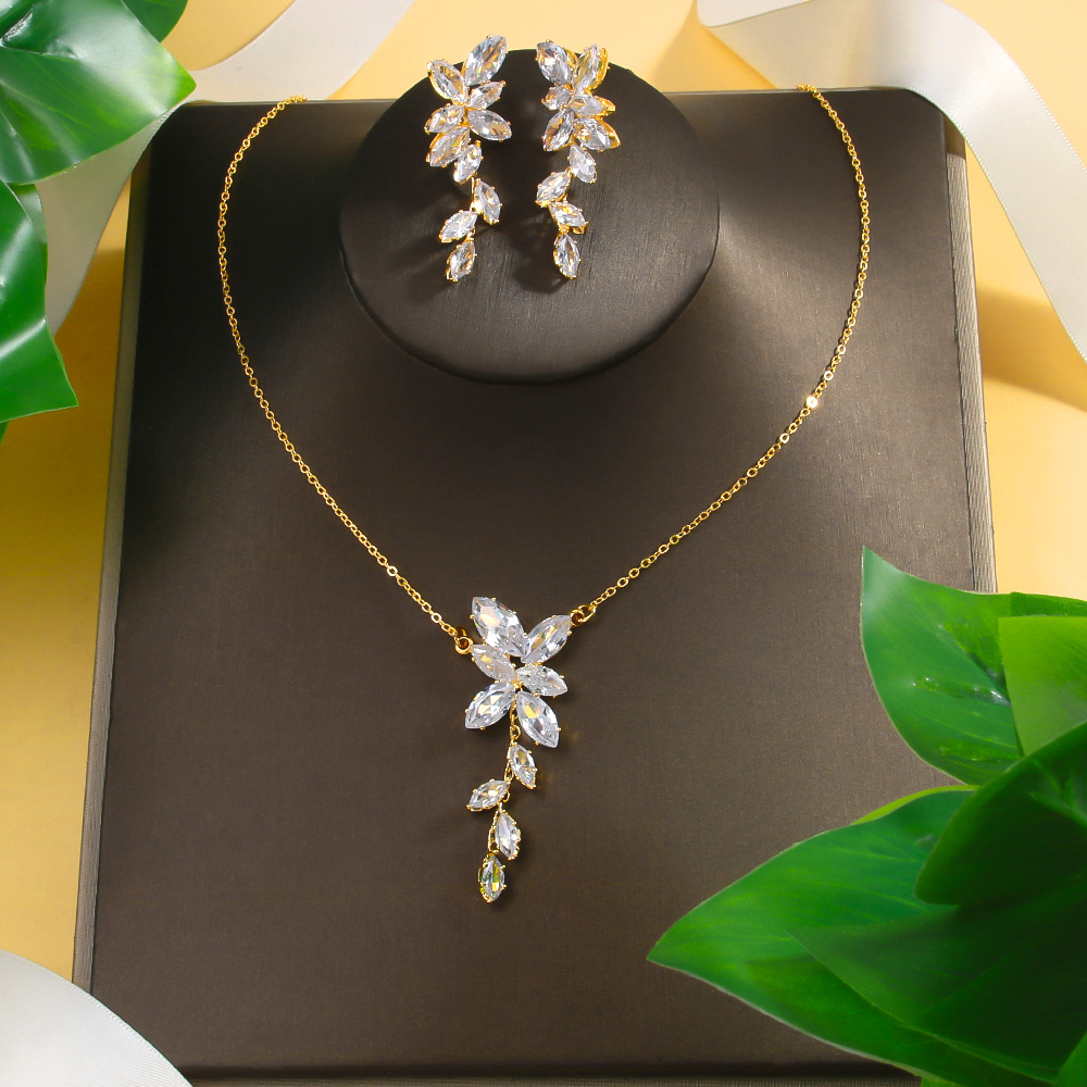 Amazon Minimalist Zircon Earrings Necklace Set Bridal Jewelry Light Luxury Jewelry Two-Piece Set