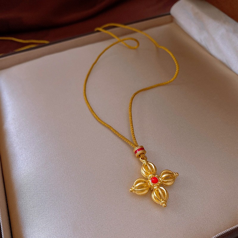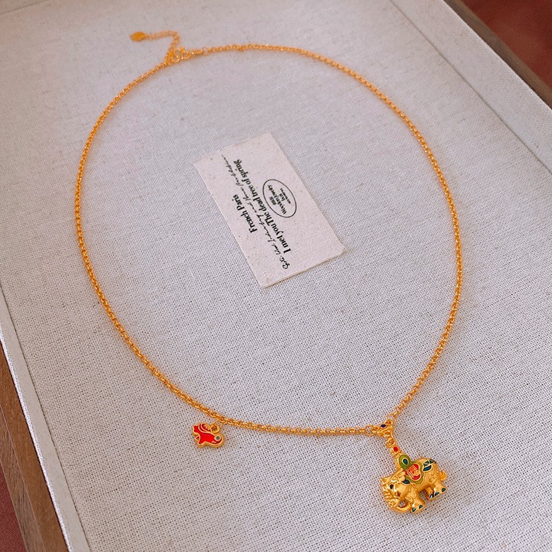 Color: 70#Necklace-gold-red-real gold plating