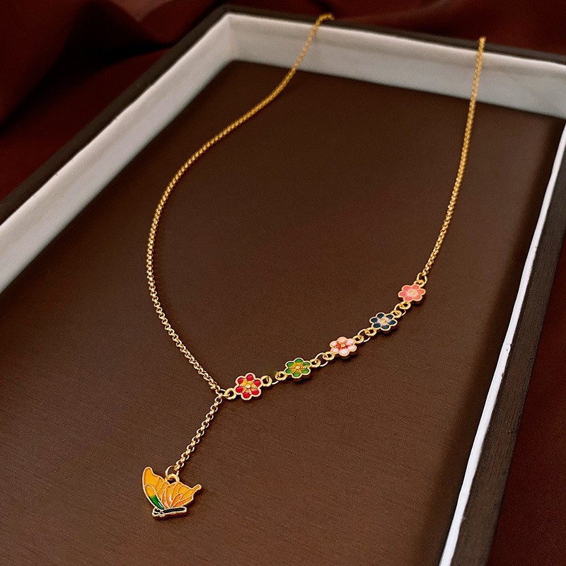 Color: 87#Necklace-gold-butterfly-real gold plating