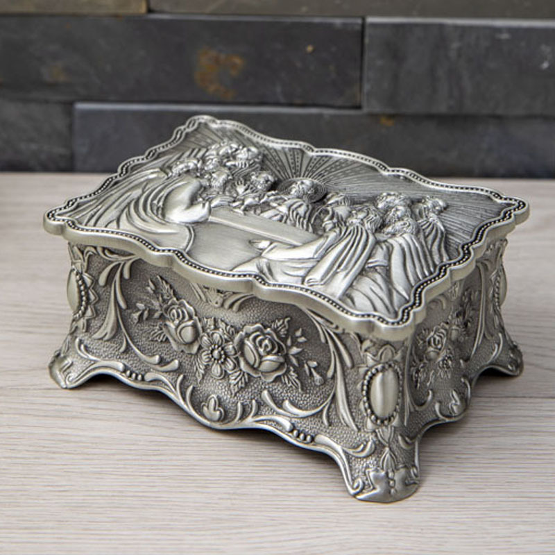 | 产品说明:锌合金珠宝盒欧美金属创意首饰盒桌面金属装饰戒指收纳复古包装盒 |