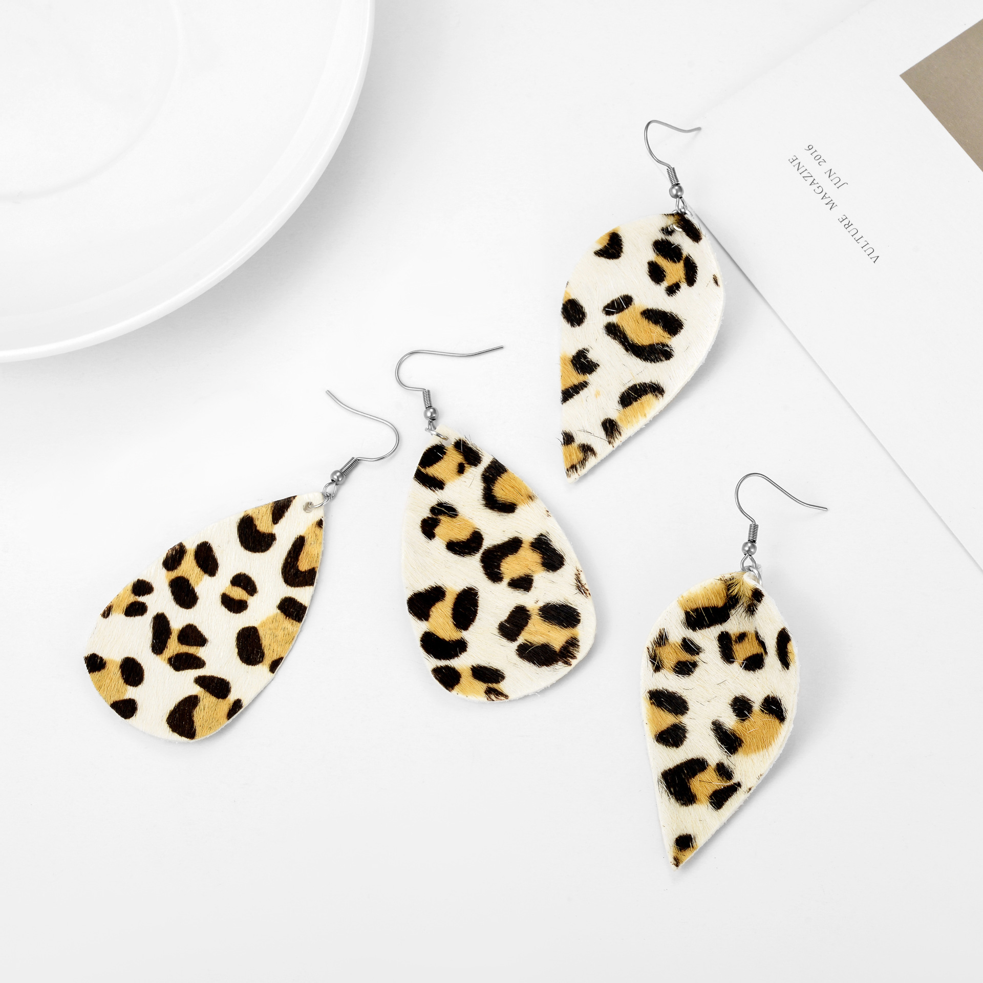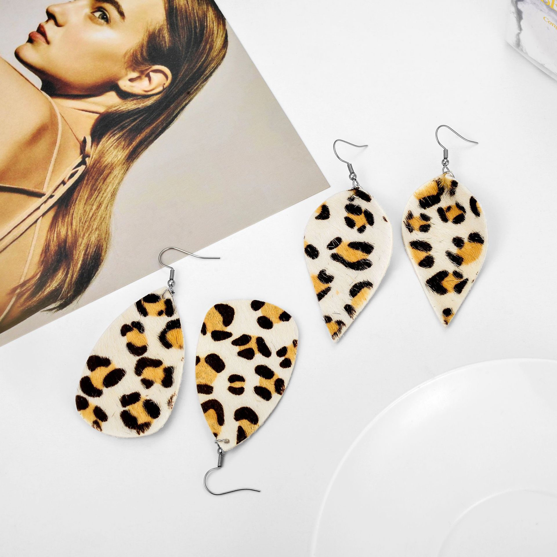 Cross-Border fashion design European and American style earring jewelry leather fashion personality leopard leaf shape earrings for women