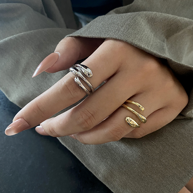 ins cold style geometric winding open ring female creative fairy style metal texture open index finger ring