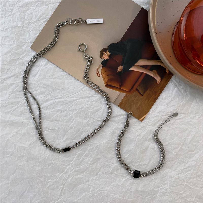 Vintage Black Square Gemstone Titanium Steel Fadeless Clavicle Chain Sweatshirt Accessories Cold Style All-match Necklace Women's Fashion