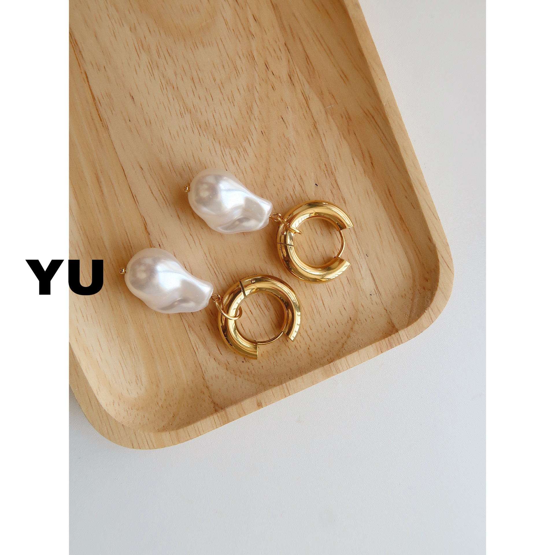 Baroque Pearl Earrings with Yu Jewelry Women's Metal Ear Buckle Retro Simple Elegant Internet Celebrity Titanium Steel Long Earrings