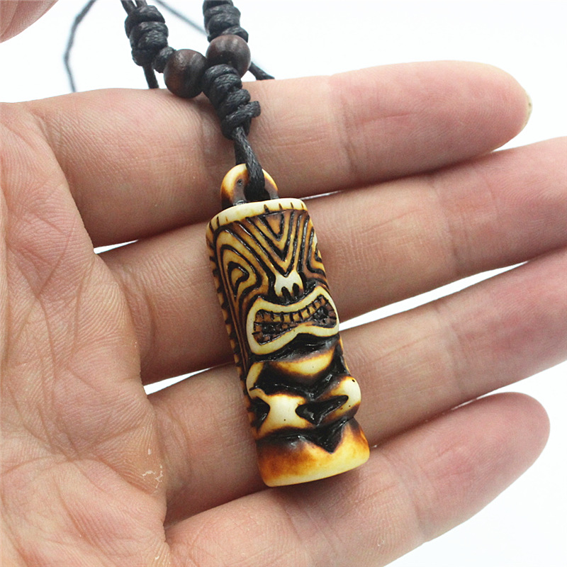 European and American men's tree finger Tiki necklace Tiki statue pendant necklace sweater chain imitation bone jewelry wholesale