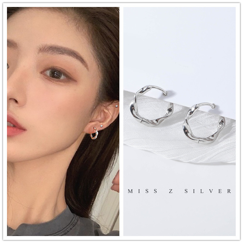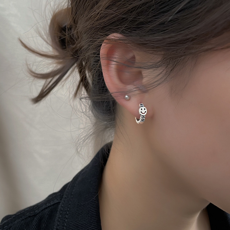 Retro Distressed Design Smiley Face Twist 925 Silver Needle Earrings and Earrings for Women with Stereo Exquisite Exaggerated Earrings