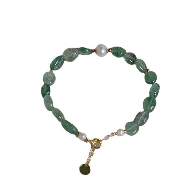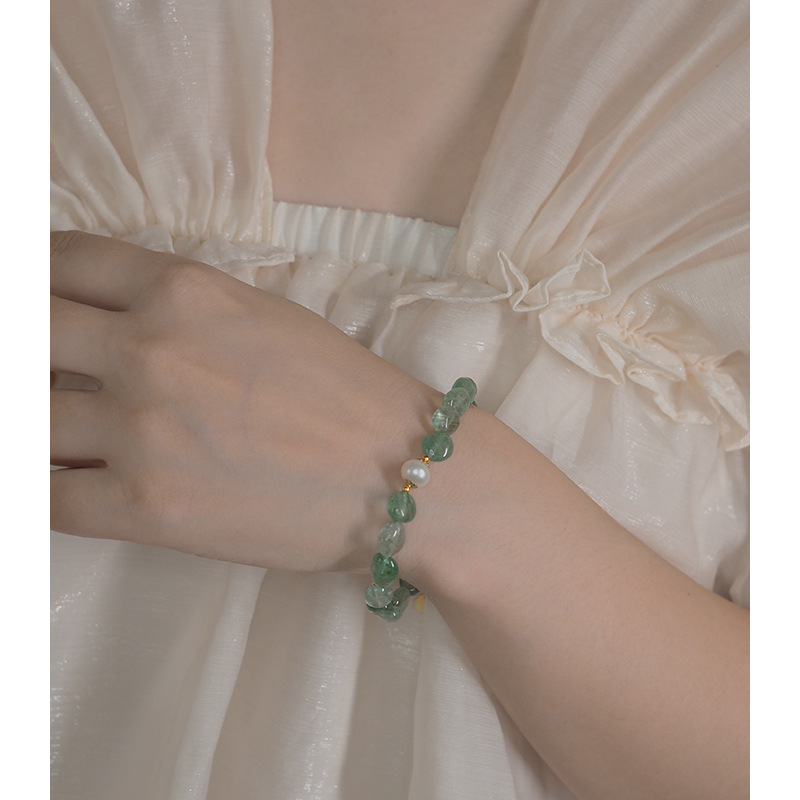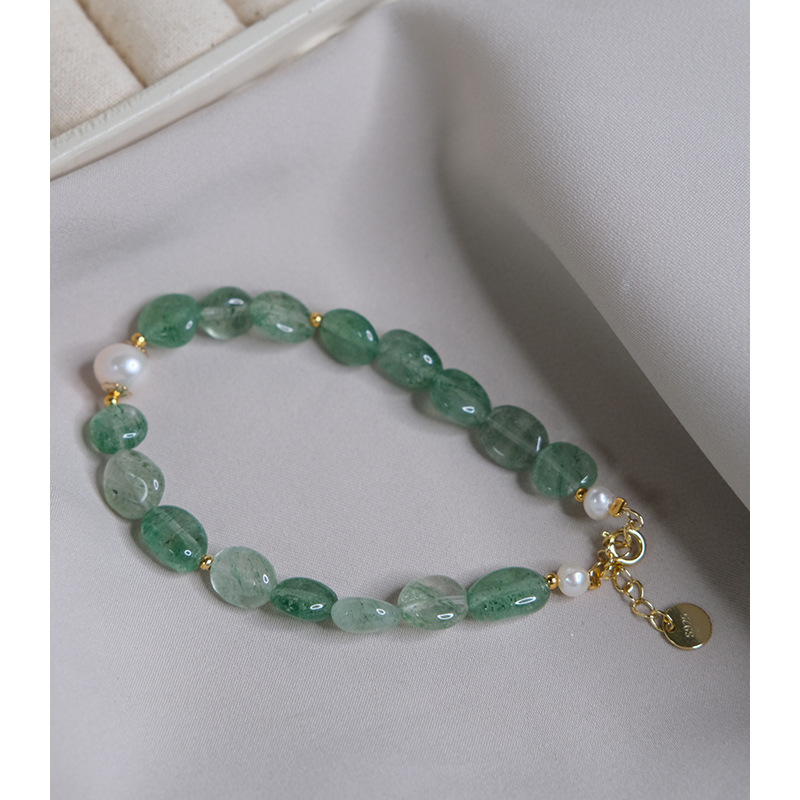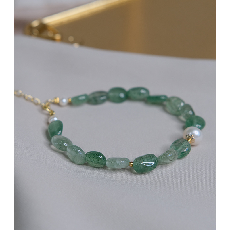 选用的绿草莓晶,如图所示,不规则,颜色,色泽,纹理均不相同,也存在瑕疵,我们这款设计的就是这种效果