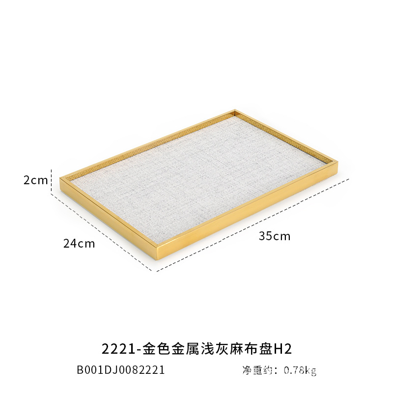 Color: 2221-gold metal light gray linen plate h2 35×24×2cm