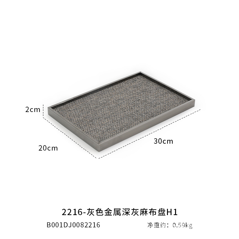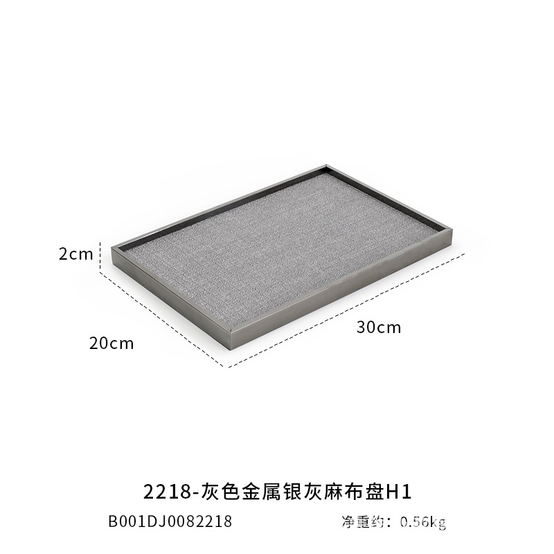 Color: 2218-gray metal silver gray linen plate h1 30×20×2cm