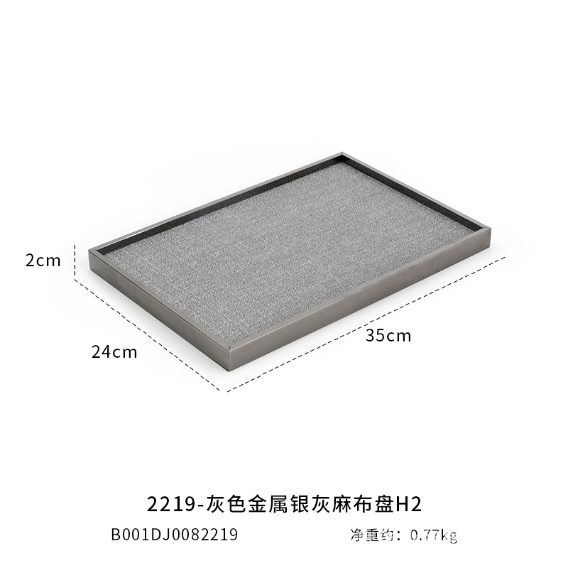 Color: 2219-gray metal silver gray linen plate h2 35×24×2cm