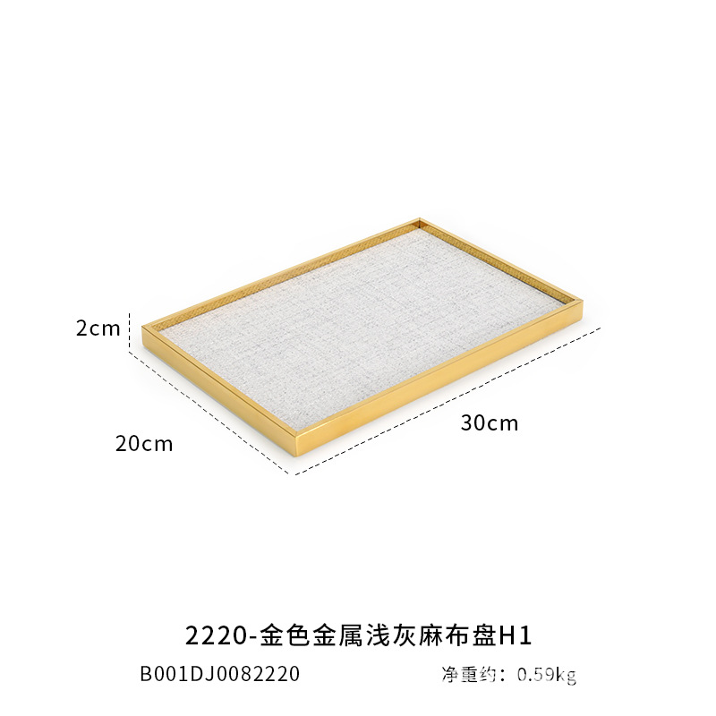 Color: 2220-gold metal light gray linen plate h1 30×20×2cm