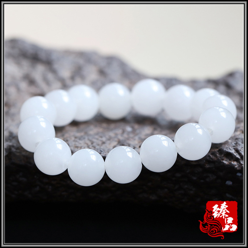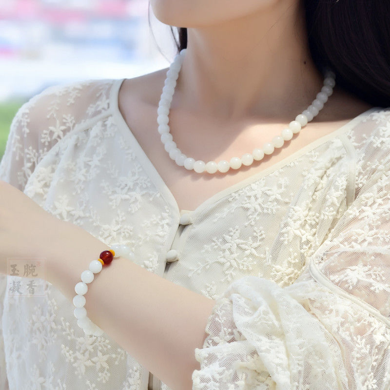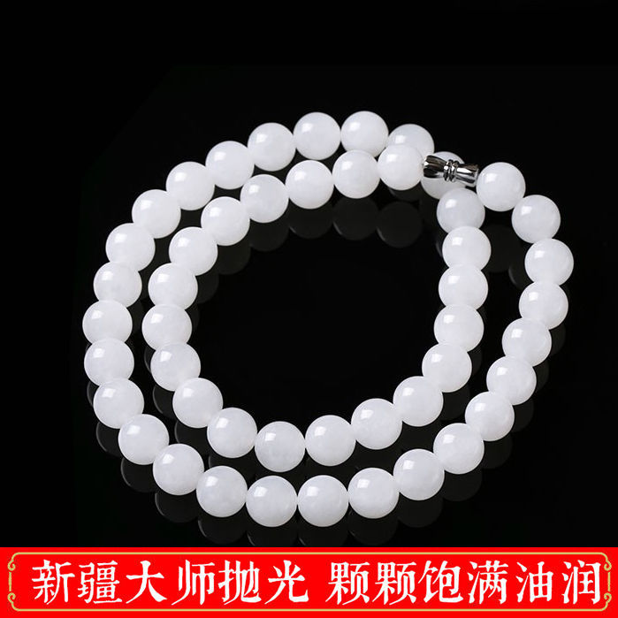 White Jade Necklace Women's 8mm Imitation Hetian Jade Round Bead Necklace White Jade Bracelet Elegant Bracelet Ethnic Style for Mother