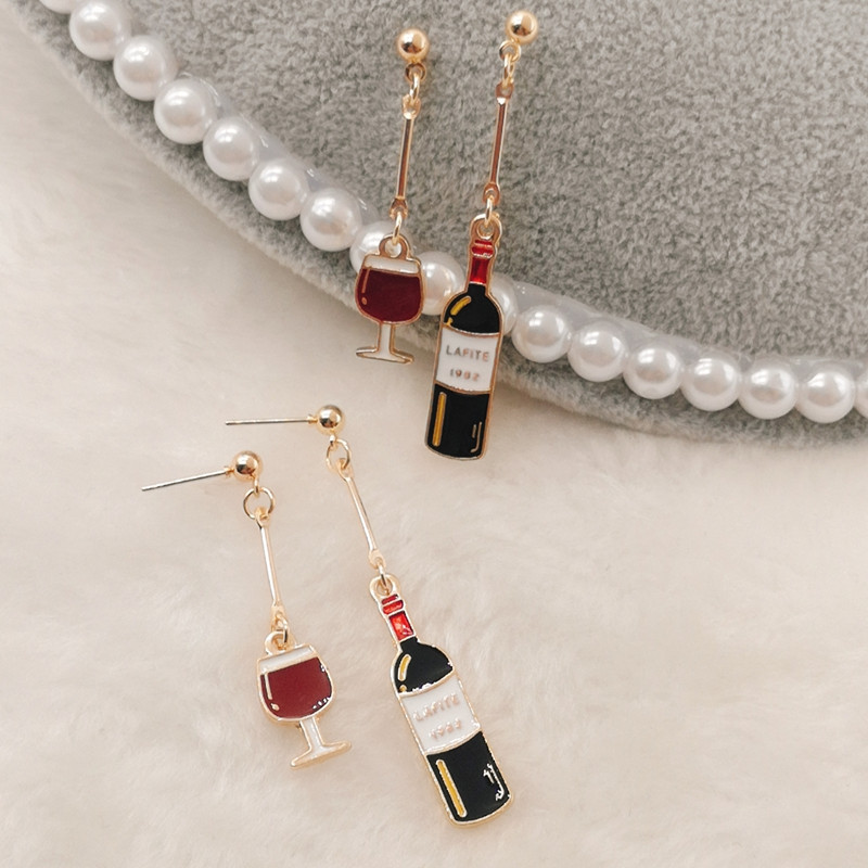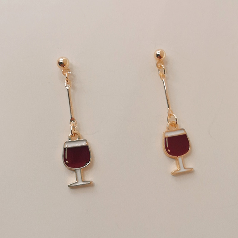2021 Cross-Border Wine Glass Earrings Mini Food Jewelry Gifts for Wine Lovers Women's Small Earrings