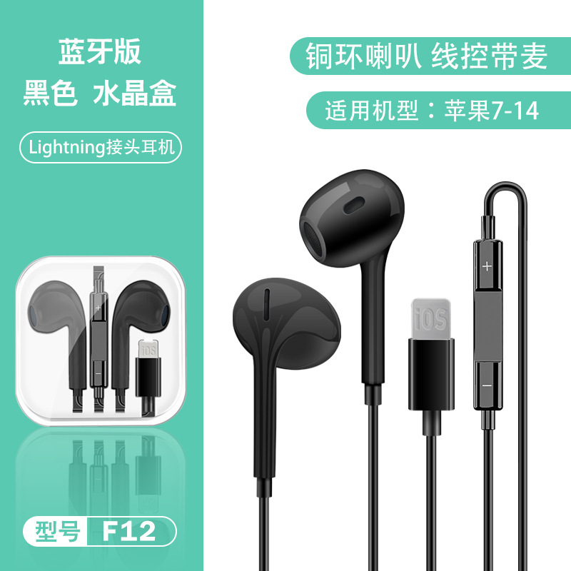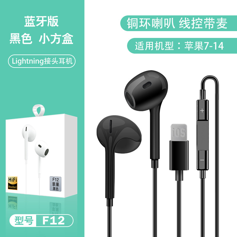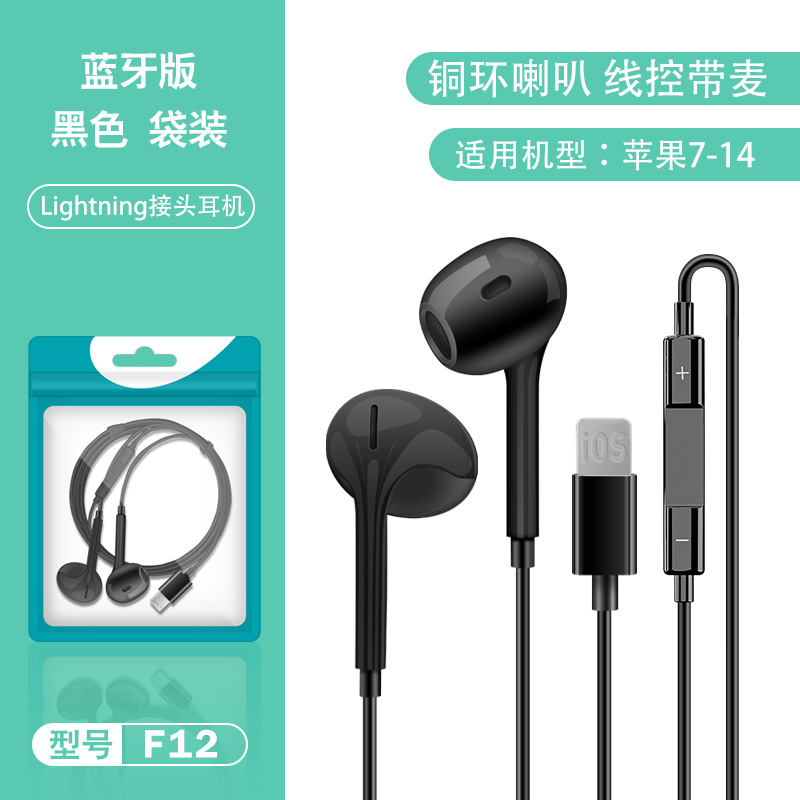 Color: F12 Copper Ring Horn Black [Apple Flat Mouth Bluetooth Edition] Bare Wire