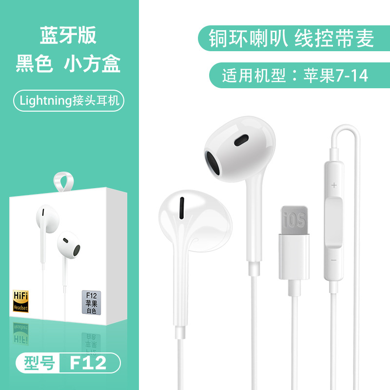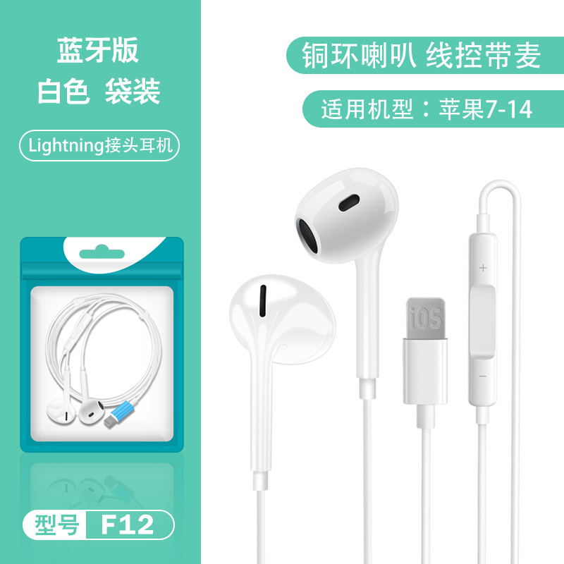 Color: F12 Copper Ring Horn White [Apple Flat Mouth Bluetooth Edition] Bare Wire