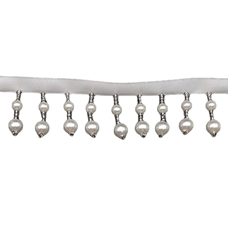 Factory spot white beads Pearl tassel lace webbing hanging tassel wedding dress Hanfu turban jewelry accessories