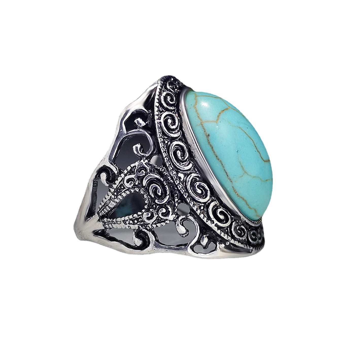 宝贝属性介绍 欧美新款个性镀925泰银夸张戒指 土耳其工匠雕刻花复古绿松石戒指 |