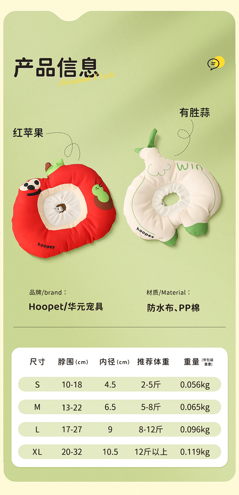 【品名】:HOOPET宠物伊丽莎白圈-橙子/饭团/饮料盒/桃子(防水款)S/M/L