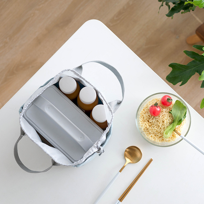 New Korean Lunch Box Bag, Imitation Linen Drawstring Insulation Bag, Hand-Carrying Lunch Bag for Male and Female Students with Rice, Fresh-Keeping Picnic Bag