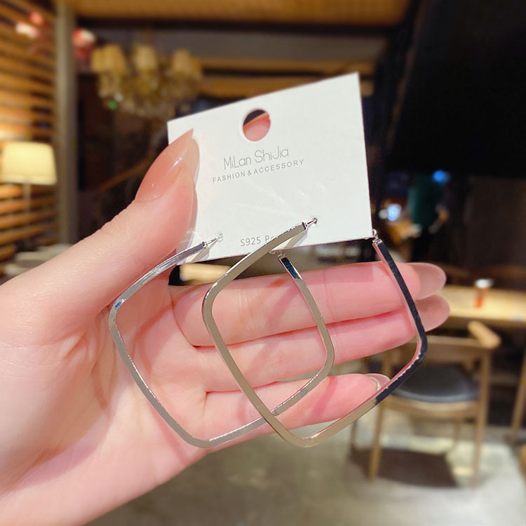 2025 New Trendy Square Hoop Large Earrings Feminine Korean Temperament Internet Celebrity Hoop Hoop Earrings