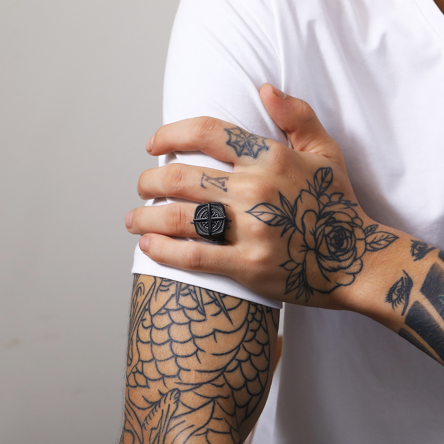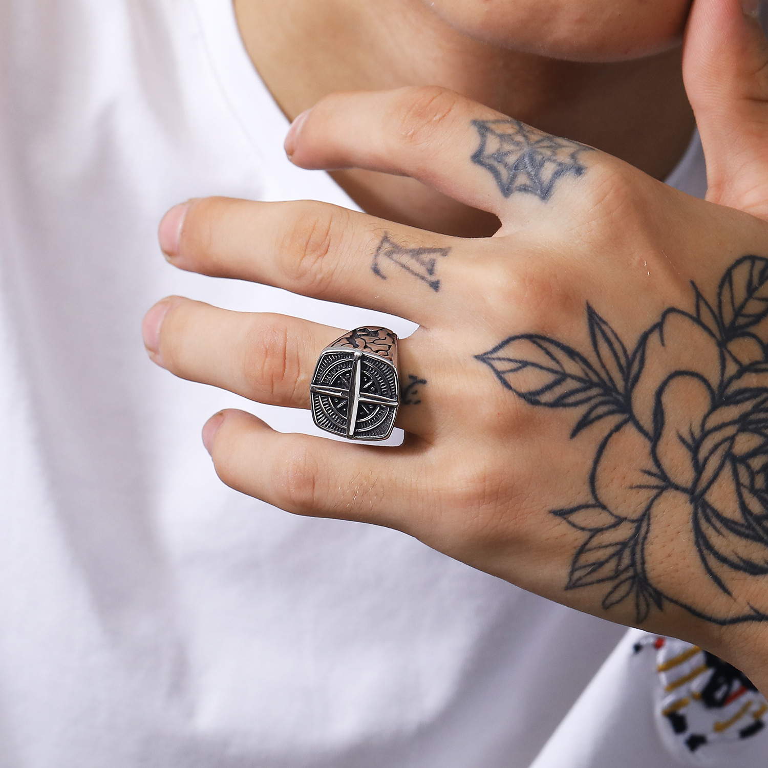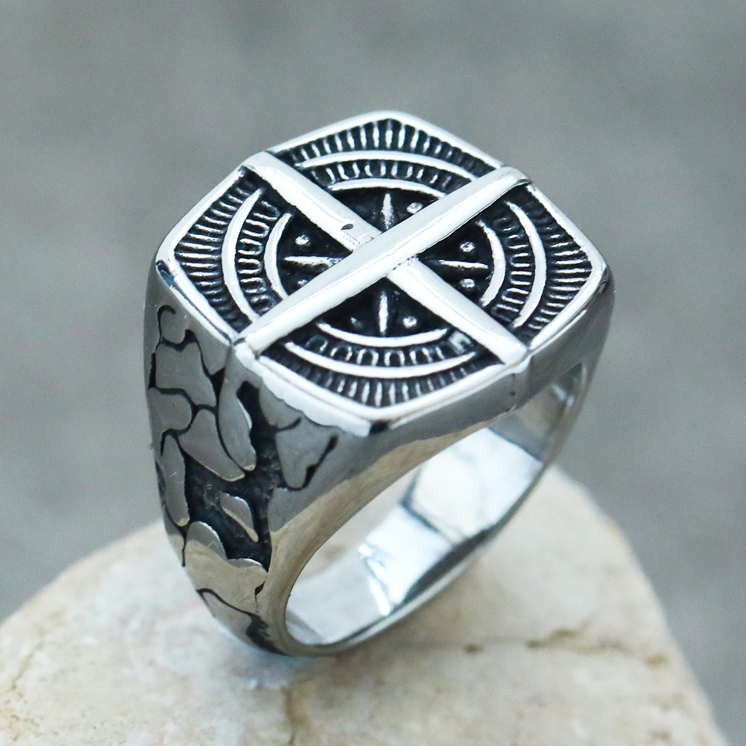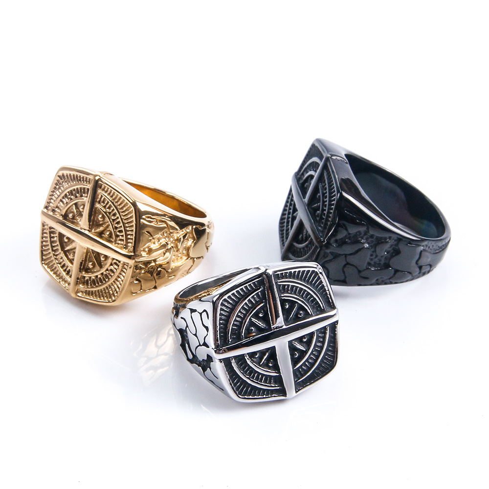Manufacturer Wholesale Direct Sales European and American New Retro Titanium Steel Ring Men's Ring Compass Logo Titanium Steel Jewelry