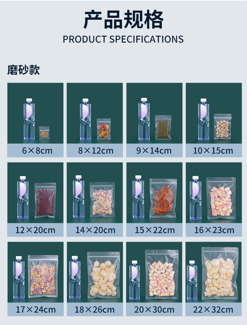 Specification model: (Rounded corners) 14*20cm* Frosted flat bottom model