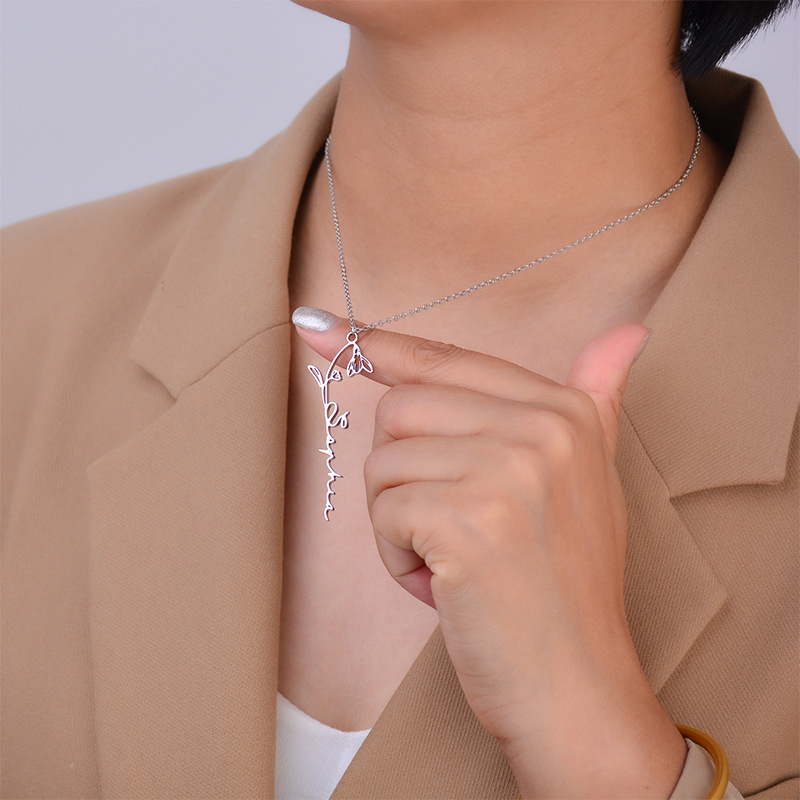 Color: Flower Necklace Titanium Steel Rose K Gold