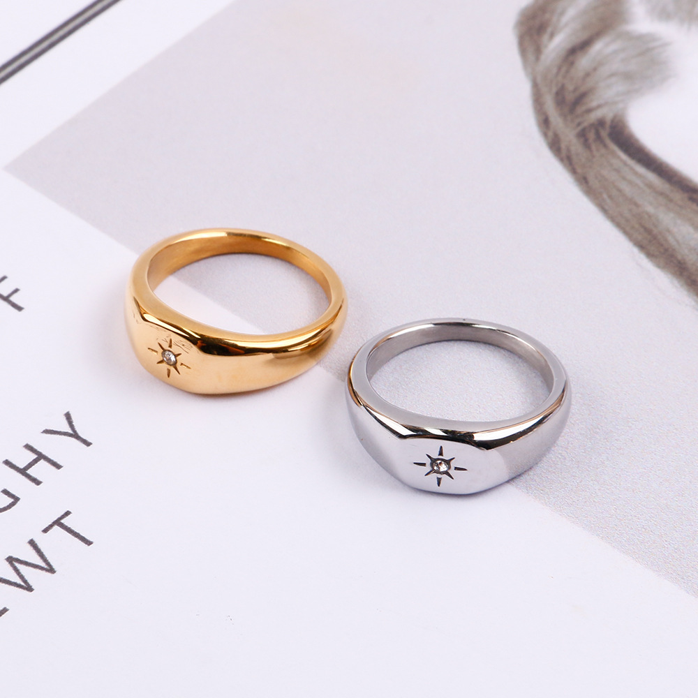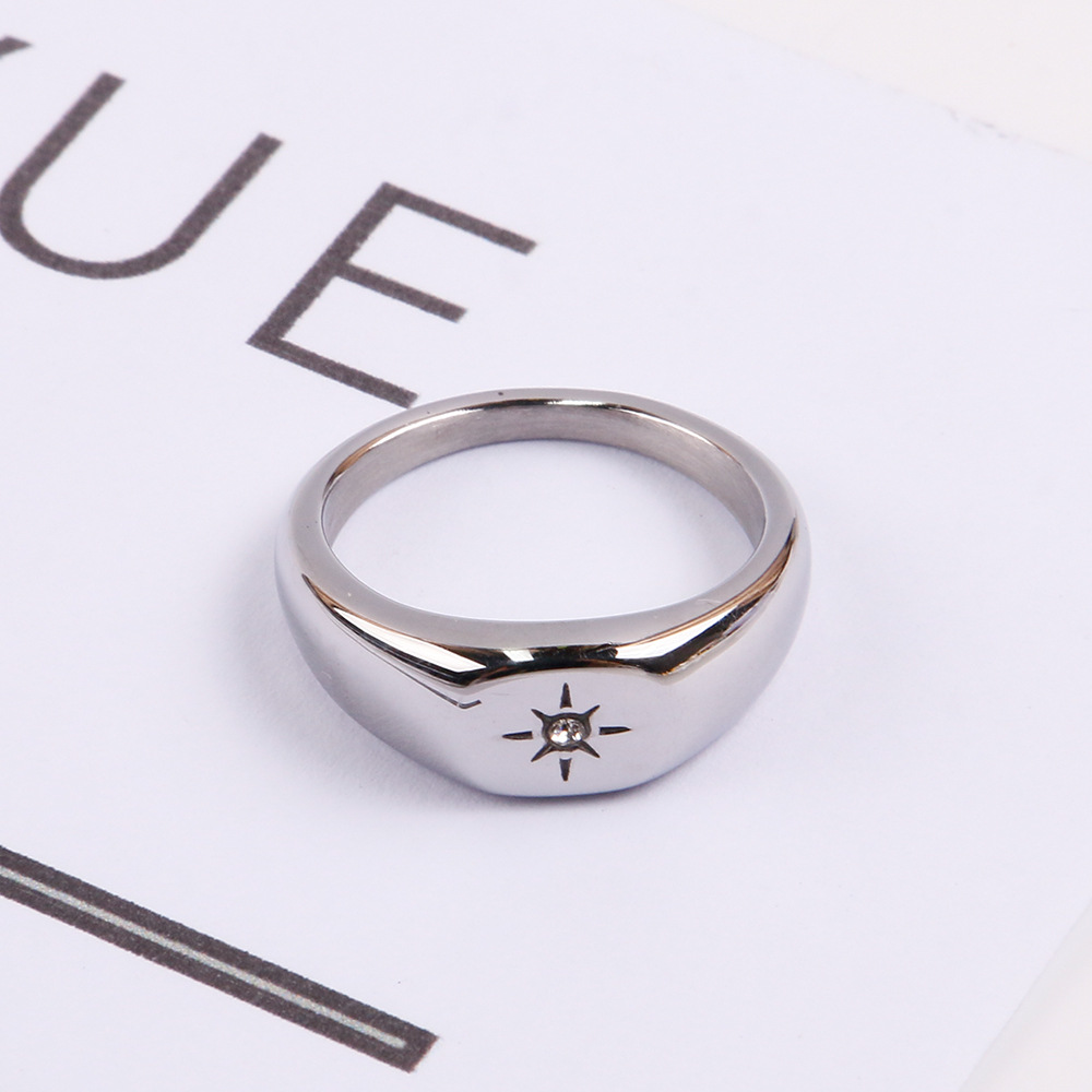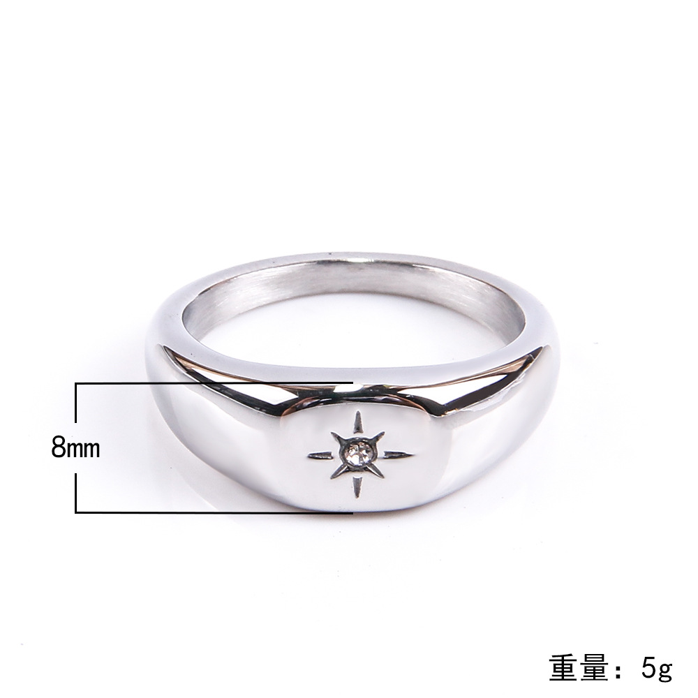 Six-Pointed Star Fashionable New Stainless Steel Ring Personalized European and American Glossy Diamond Oval Titanium Steel Ring