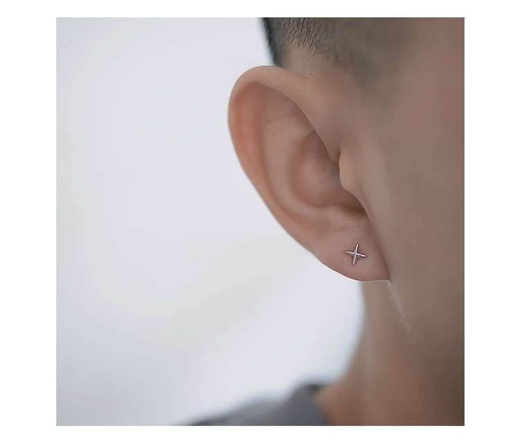 Men's Cross Ear Stud Sense Couple Earrings Boys Star Four Corner Women's Six-pointed Star Simple All-match Distinctive Earrings