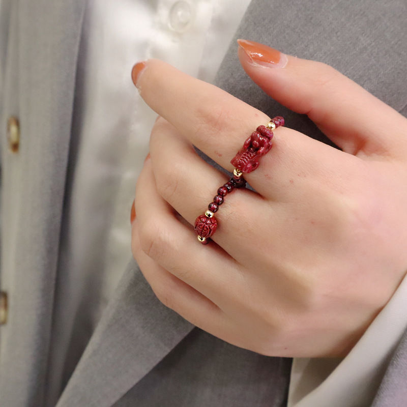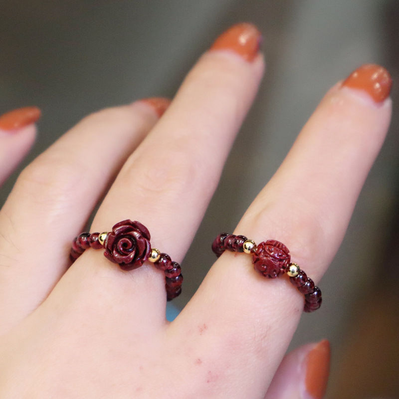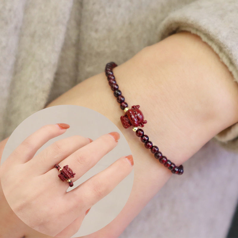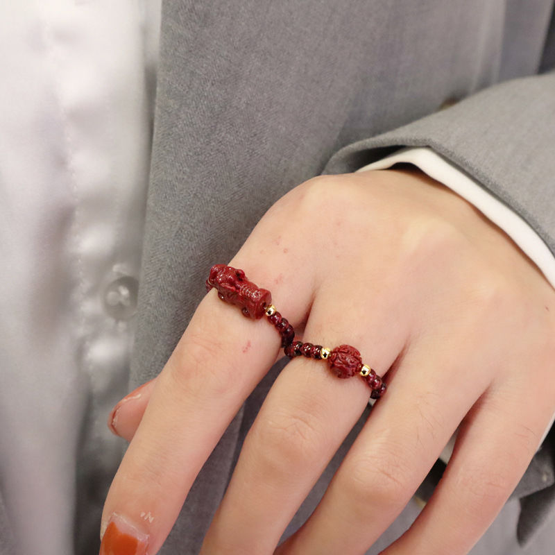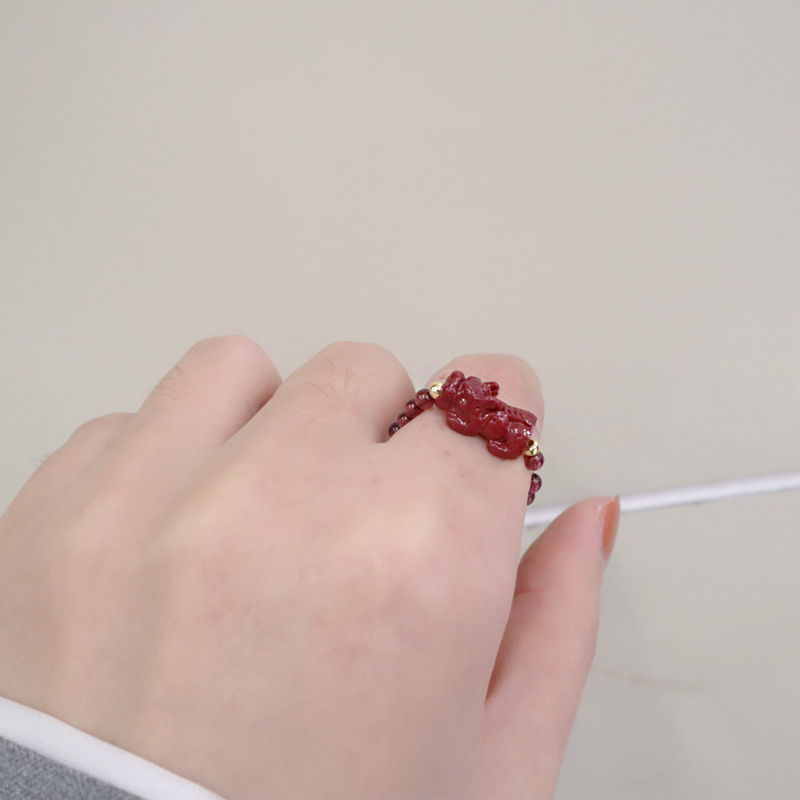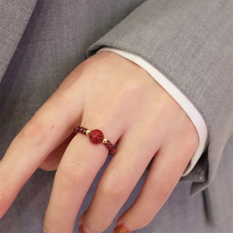Color: Garnet Cinnabar Four-leaf Clover Ring