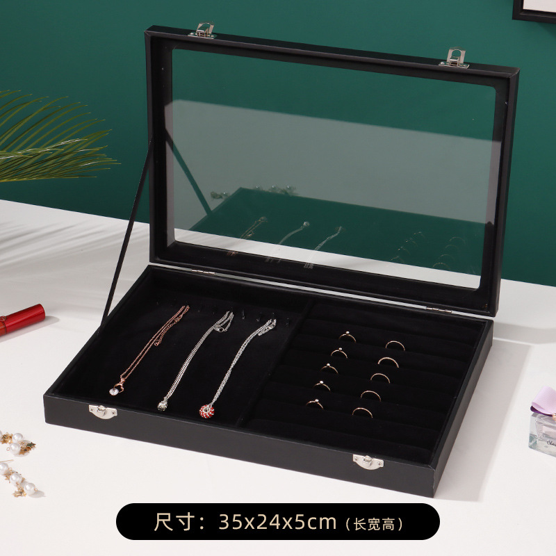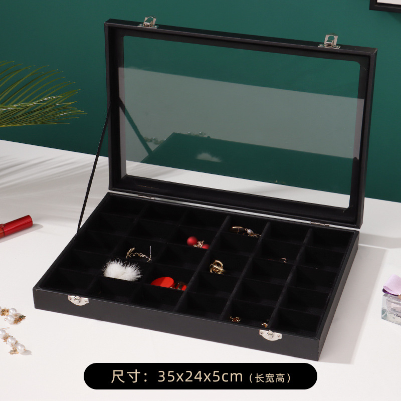 Specifications and models: Jewelry Box 30 compartment [outer black leather inner black velvet] * large