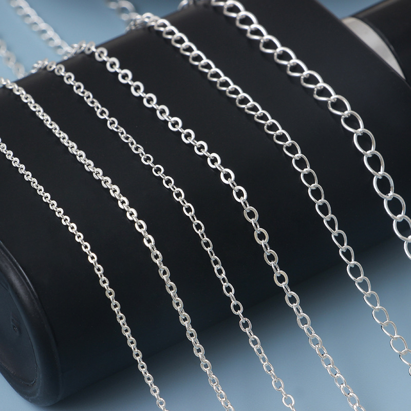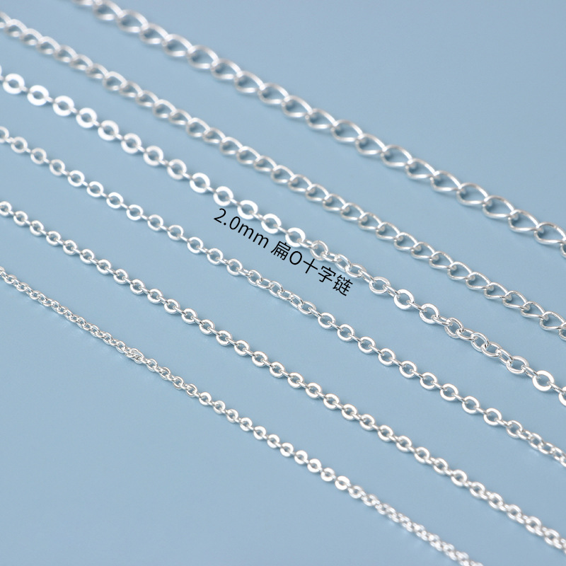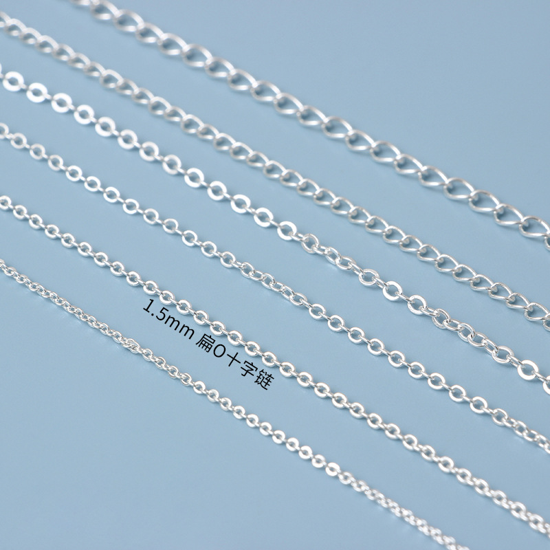 Copper chain plating S925 sterling silver color flat o chain cross chain silver loose chain Handmade diy necklace jewelry accessories