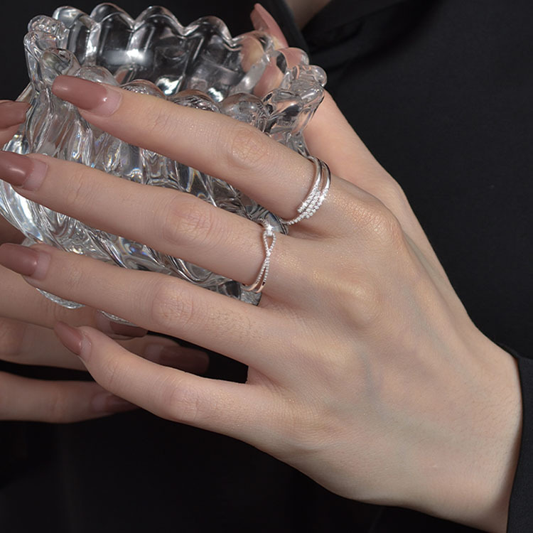 Diamond-encrusted ring female niche design multi-layer interwoven ring light luxury high-end cool wind opening adjustable