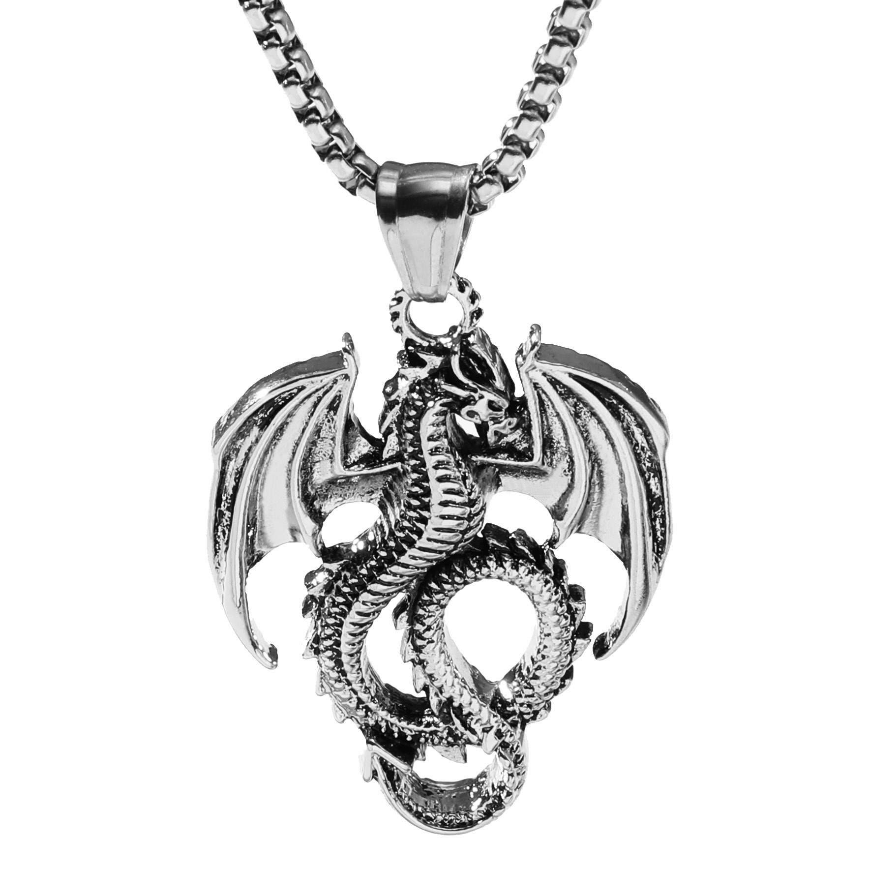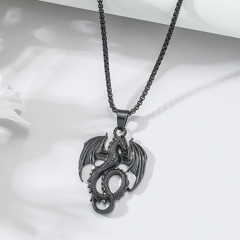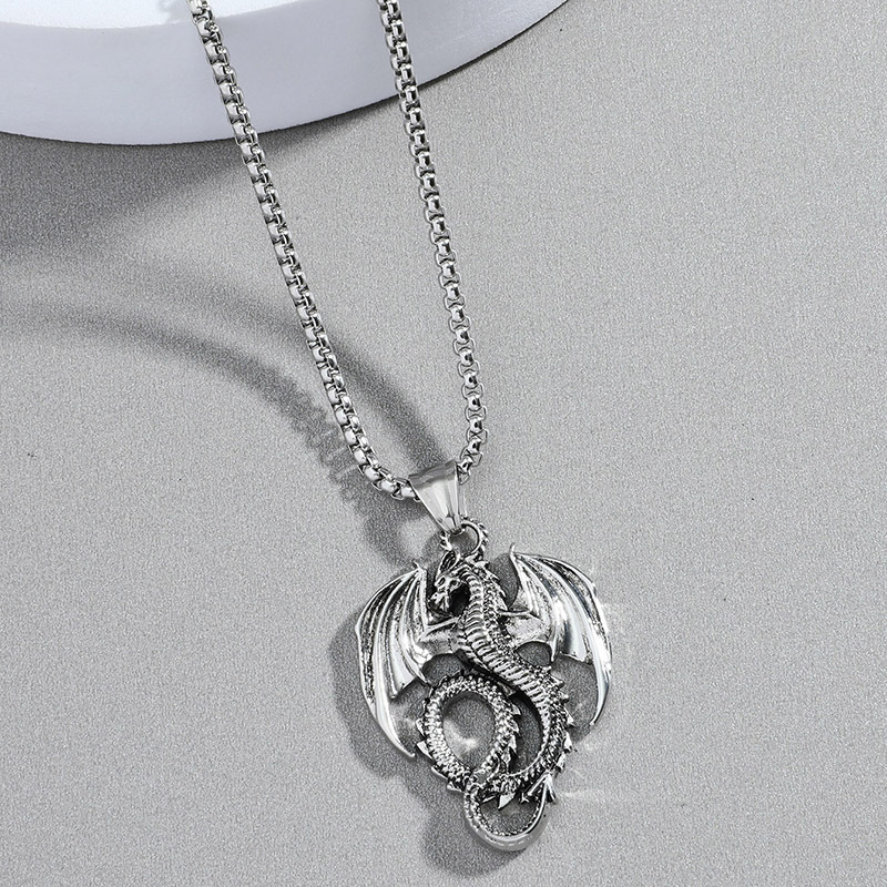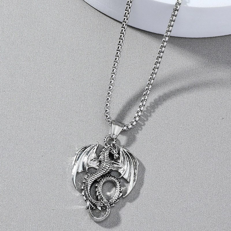 European and American Retro Flying Dragon Men's Necklace Personalized Punk Chinese Dragon Pendant Street Disco Hip-Hop Jewelry Accessories