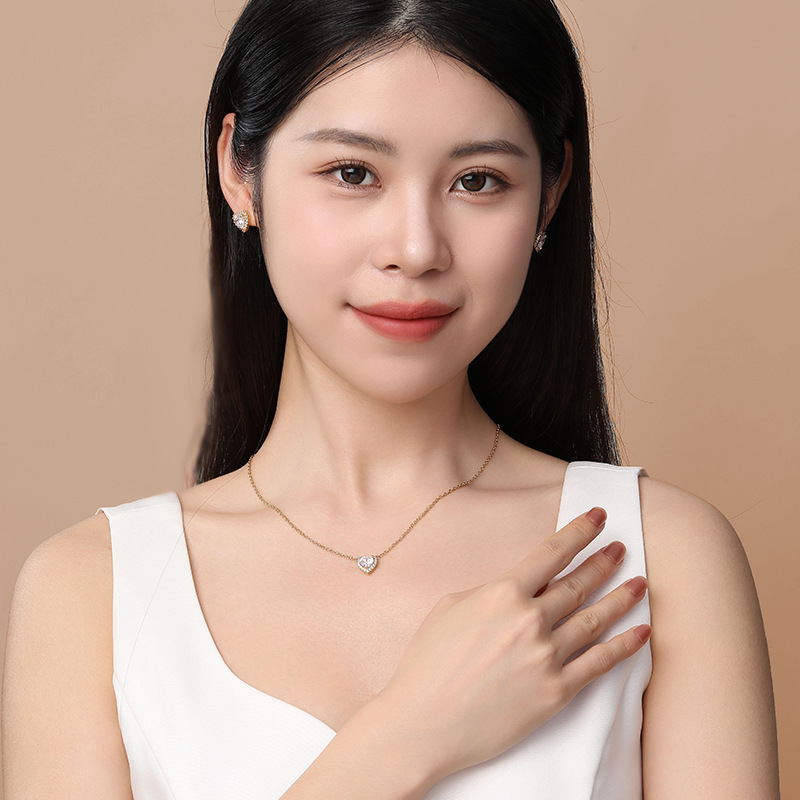 Classic 5A Zircon Pendant Necklace Women Amazon Hot Selling Platinum Necklace Women Love Earrings Set Jewelry