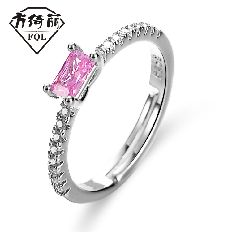Shake the sound of live new luxury exquisite pink rectangular color zirconium group with opening ring female manufacturers wholesale generation