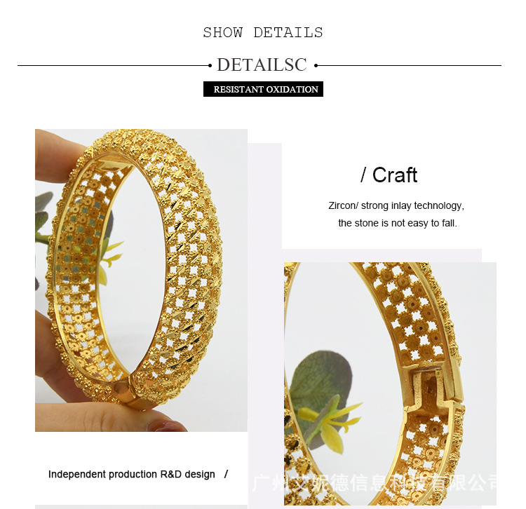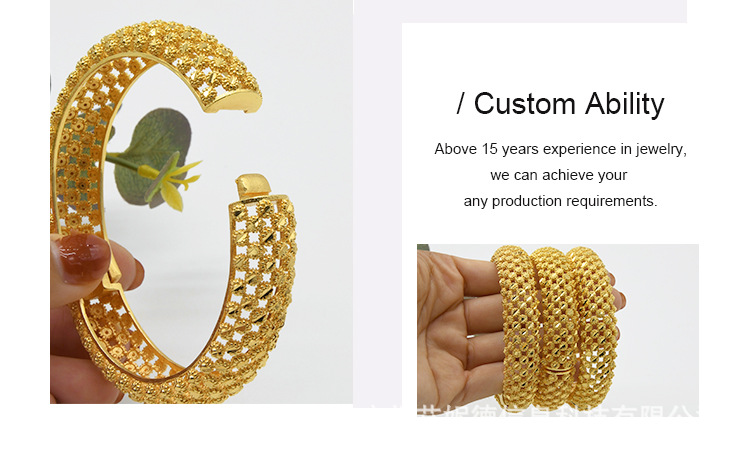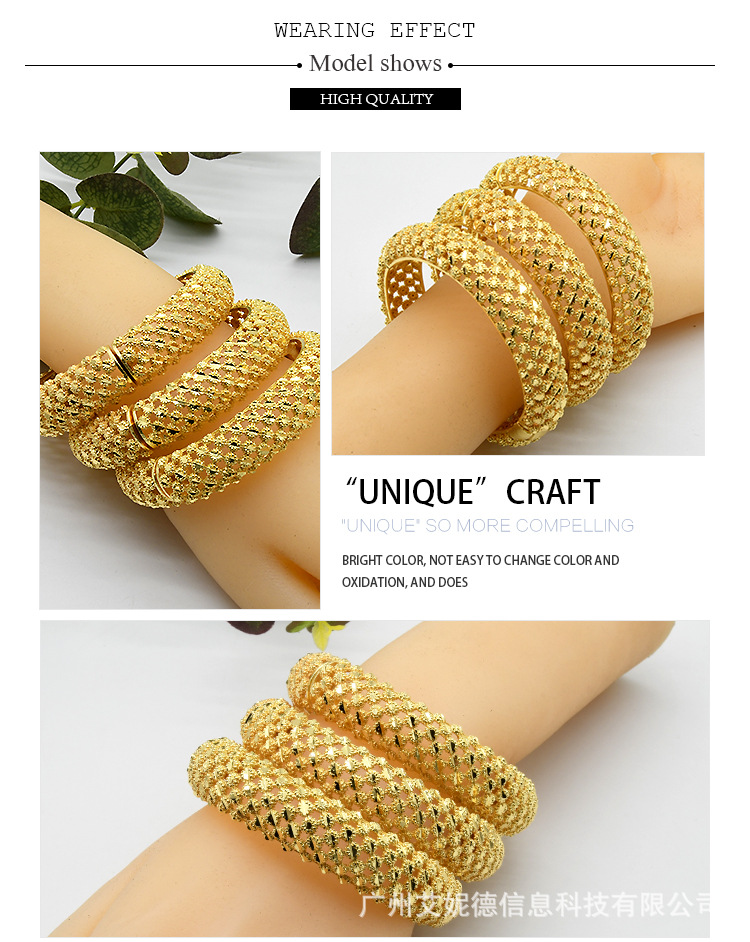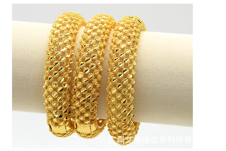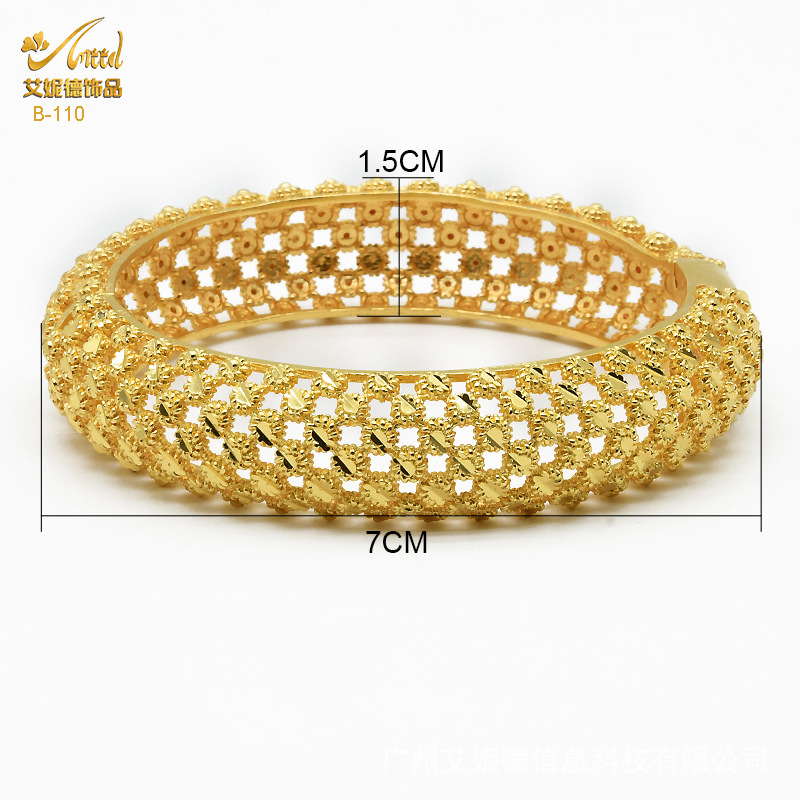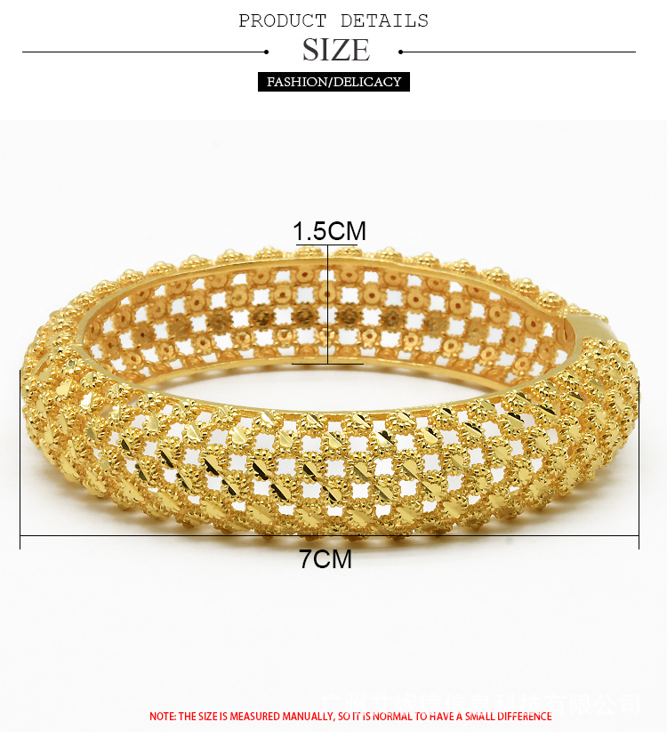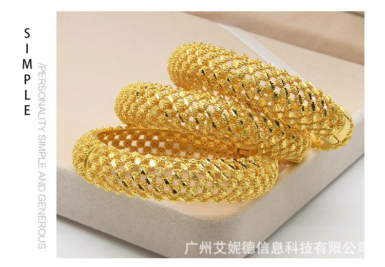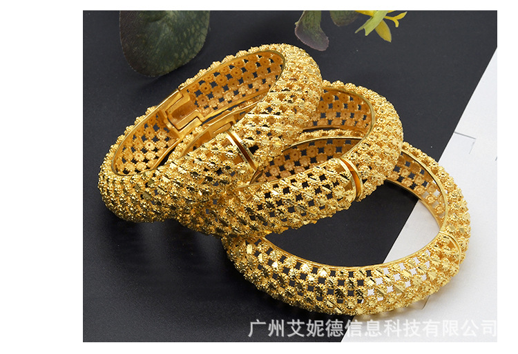 Cross Border Dubai Bride 24K Alloy Opening Bracelet Nigeria Arab Women's Wedding Gold Bracelet Wholesale