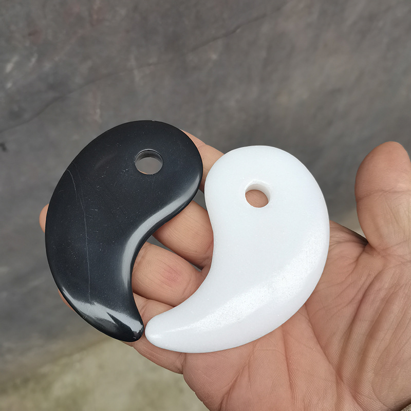 Stone needle Black and White Tai Chi eight diagrams Plate yin and yang fish scraping plate massage stone Jade energy stone eye Meridian tendon