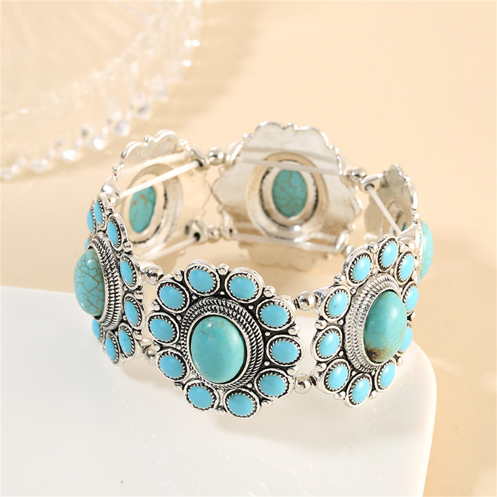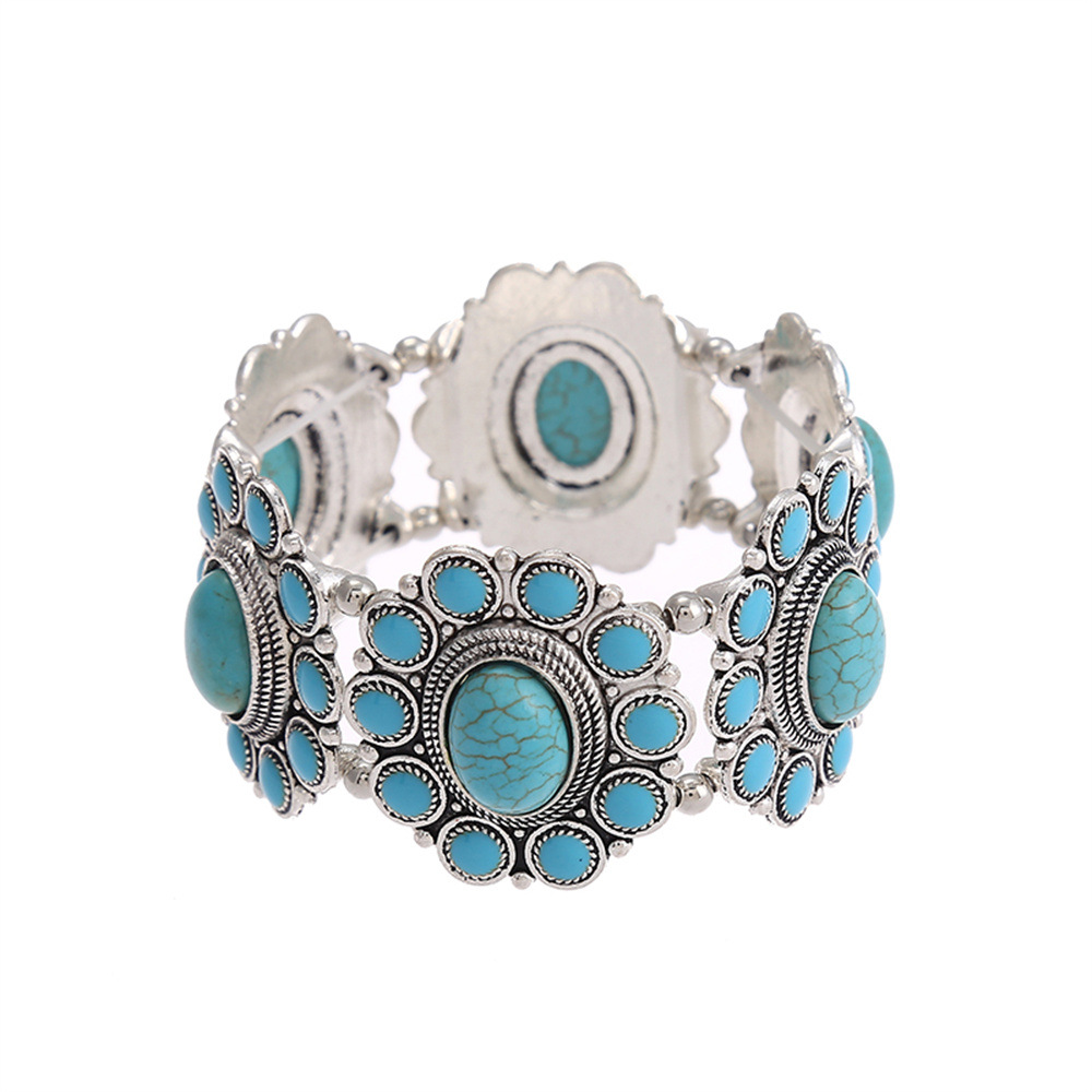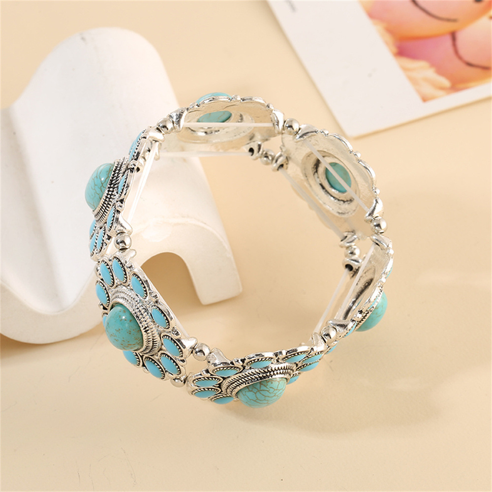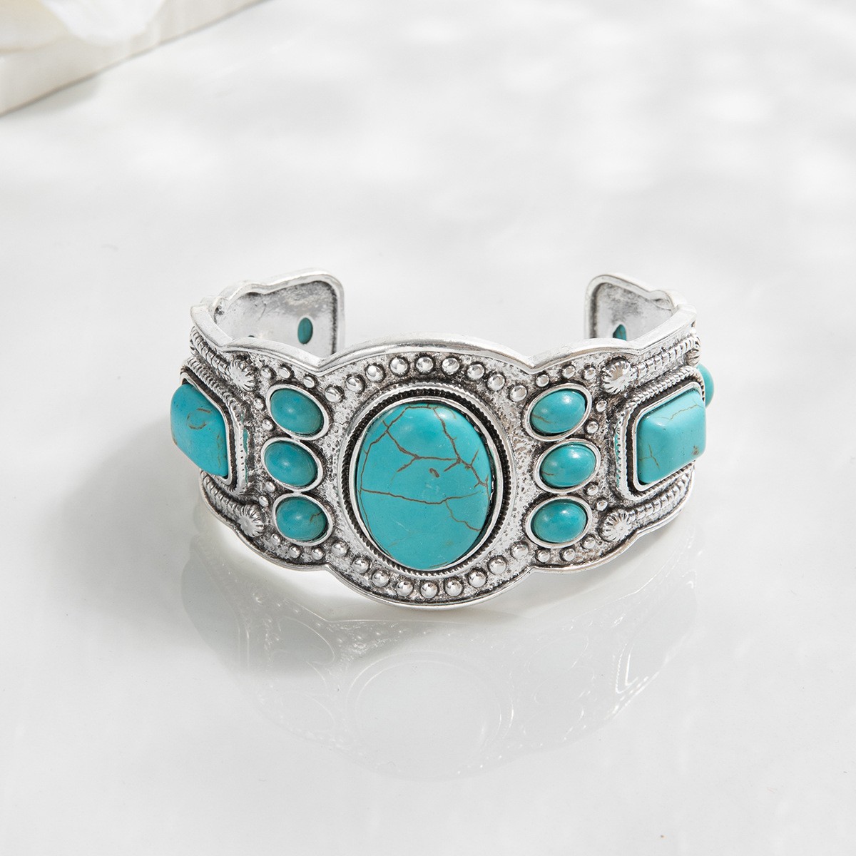 Turquoise Bracelet Cross-Border European and American Bohemian Bracelet Antique Silver Jewelry Retro Women's Jewelry Natural Stone Jewelry